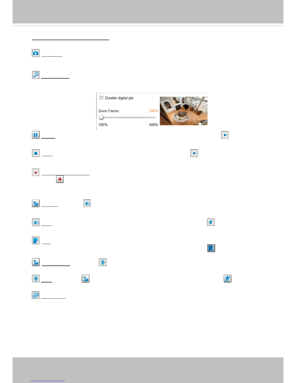 Video and Audio Control Buttons: Depending on the Network Camera model and Network Camera