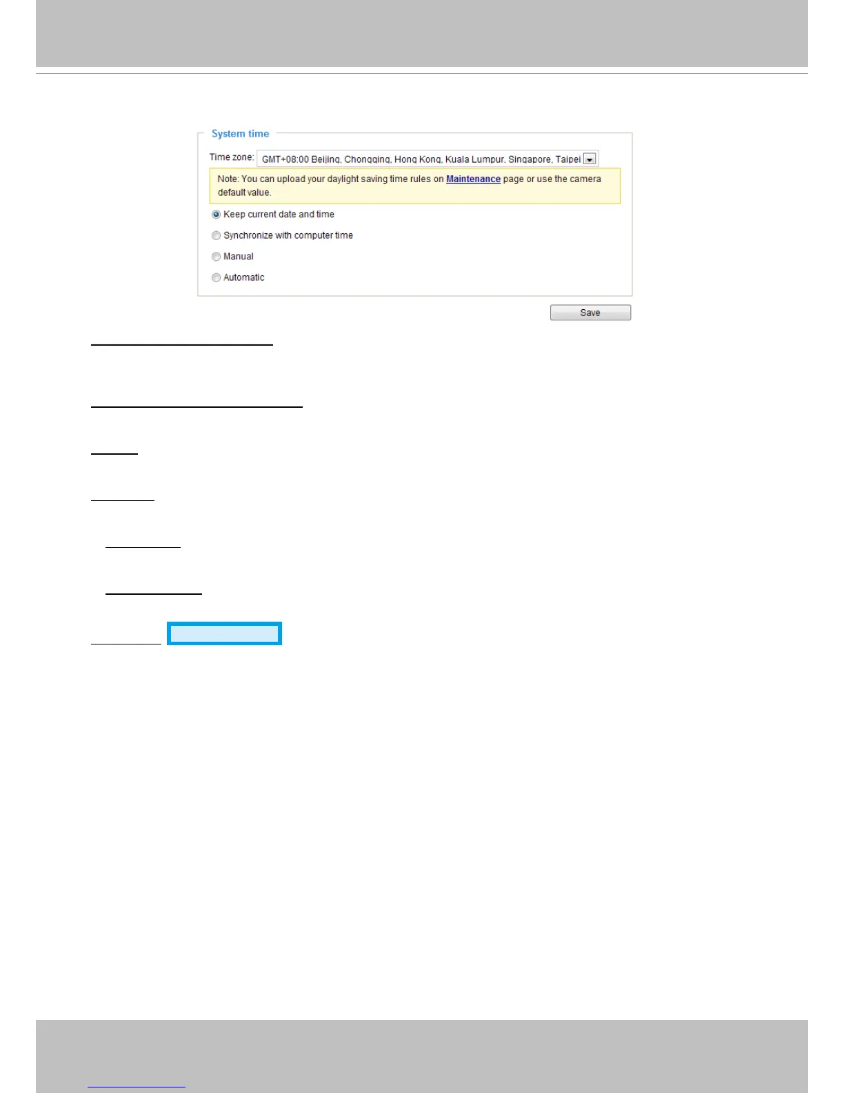 Manual: The administrator can enter the date and time manually. Note that the date and time format are