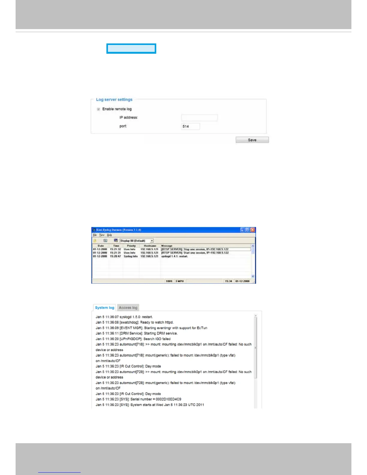 messages from the Network Camera� An example is Kiwi Syslog Daemon� Visit http://www.kiwisyslog.
