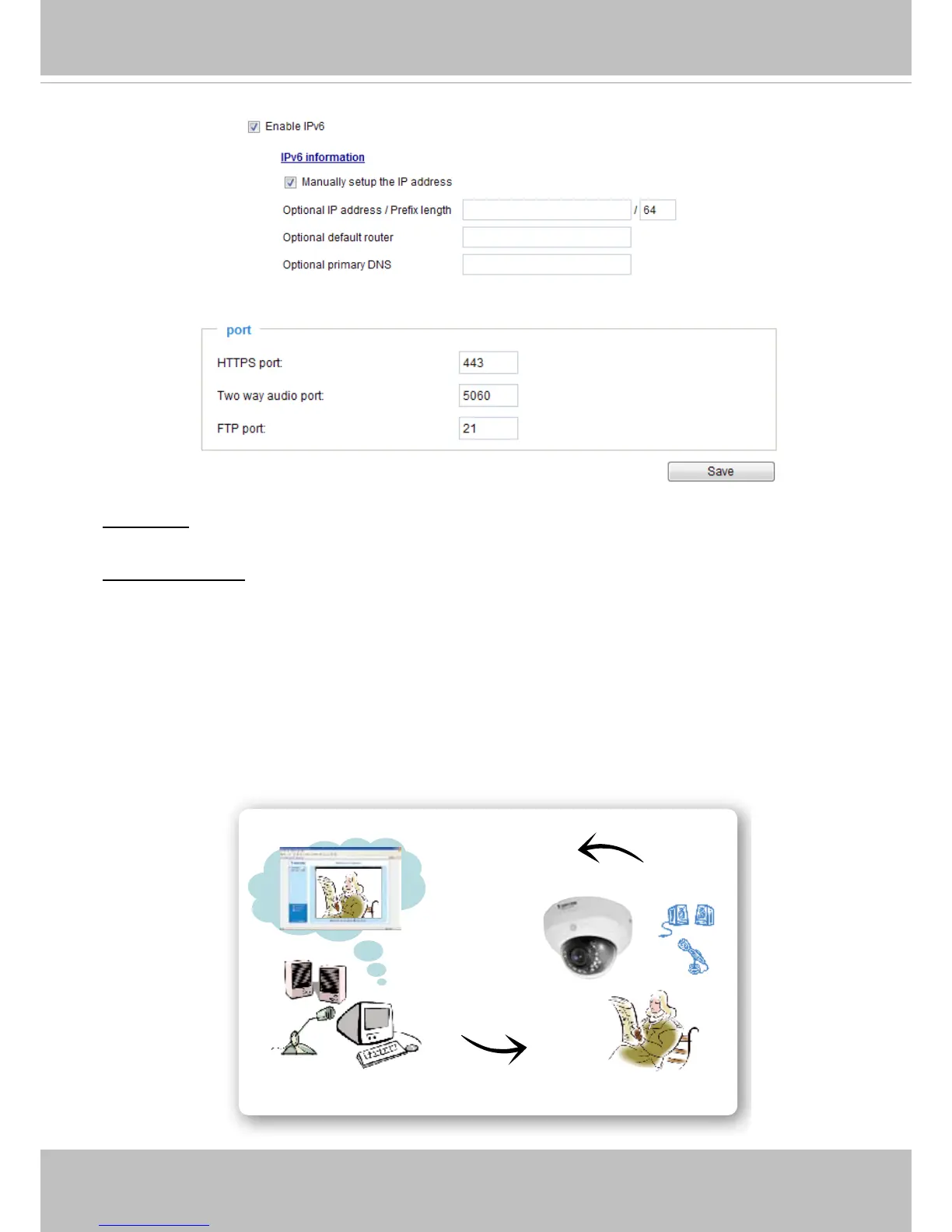 Two way audio port: By default, the two way audio port is set to 5060. Also, it can also be assigned to