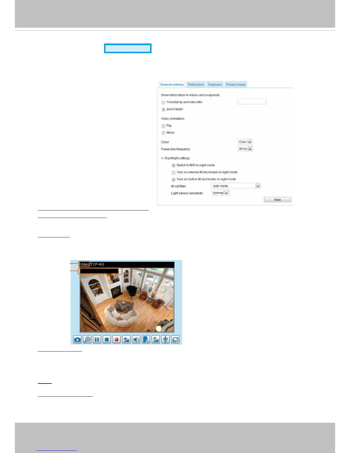 Video orientation: Flip--vertically reect the display of the live video; Mirror--horizontally reect the display