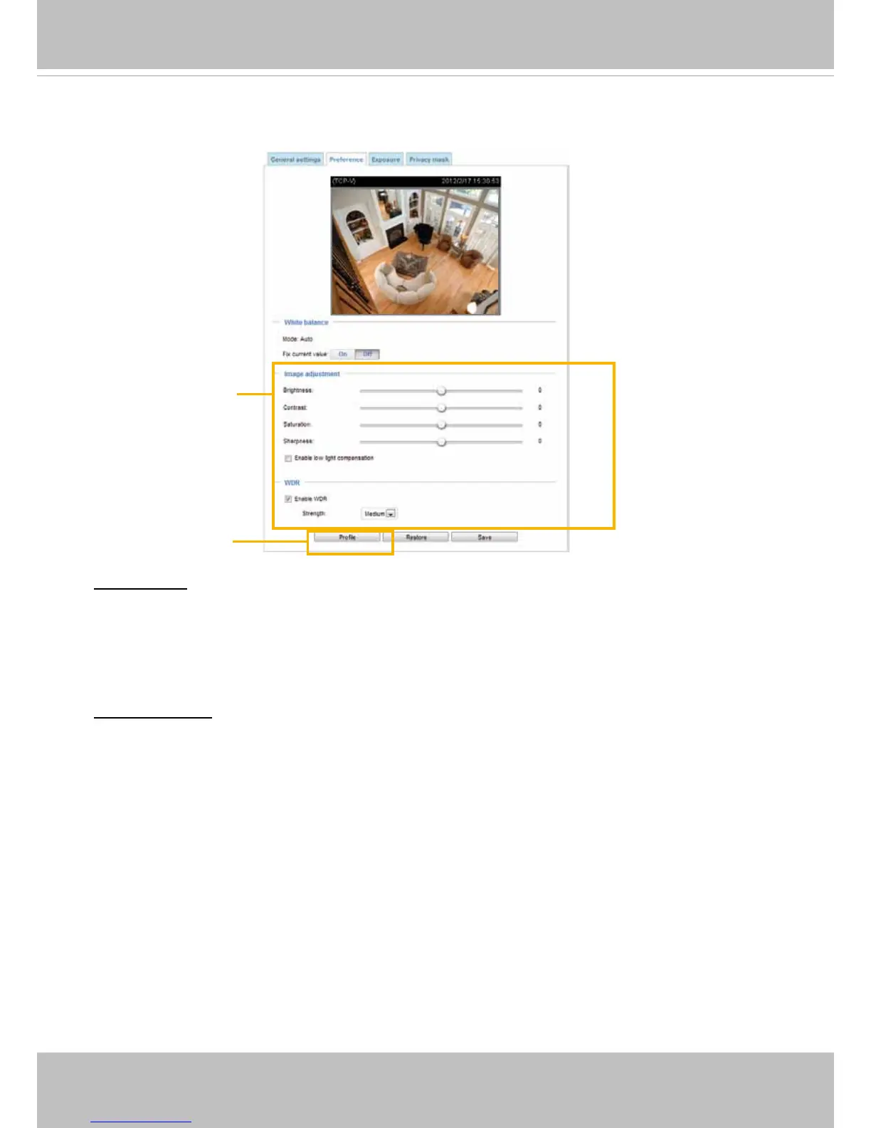 On this page, you can tune the White balance, Image adjustment and WDR enhanced �