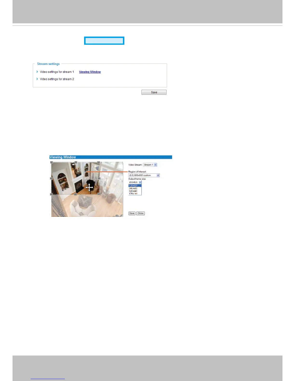 ■ Stream 1: Users can dene the "Region of Interest" (viewing region) and the "Output Frame Rate" (size