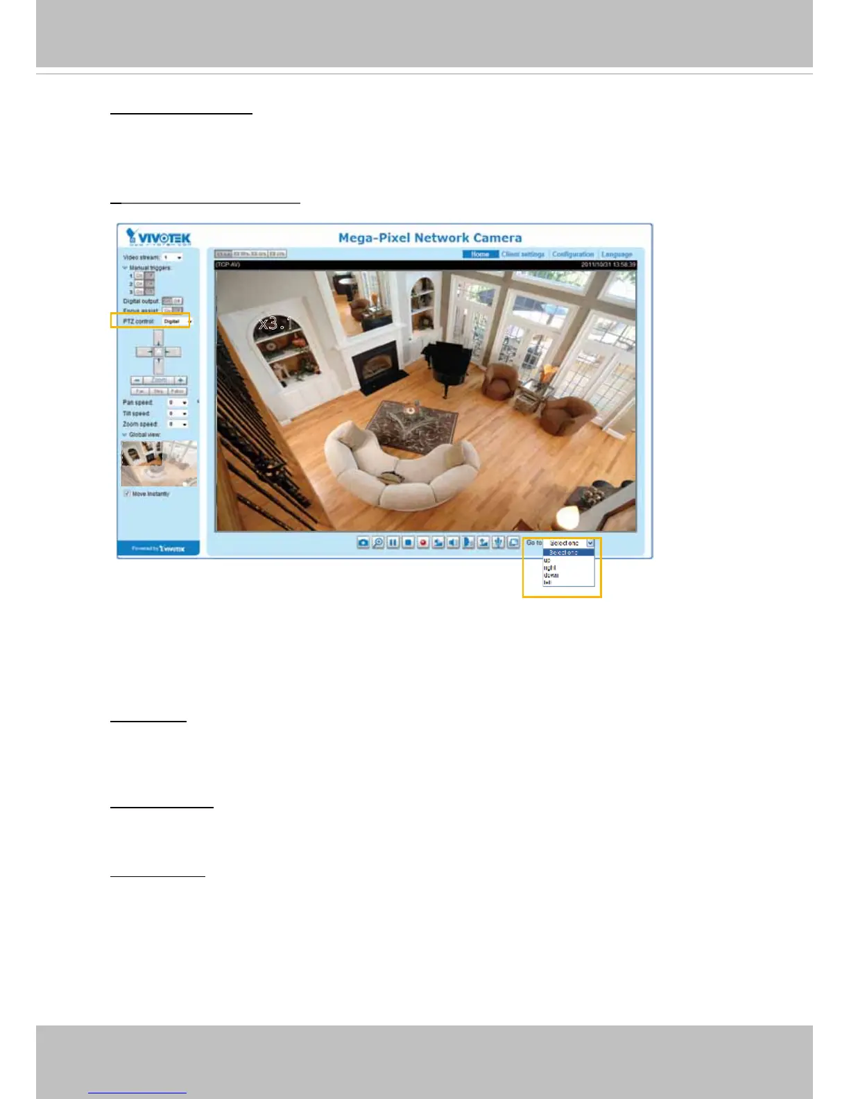 The e-PTZ function also supports “Click on Image“� When you click on any point of the Global View