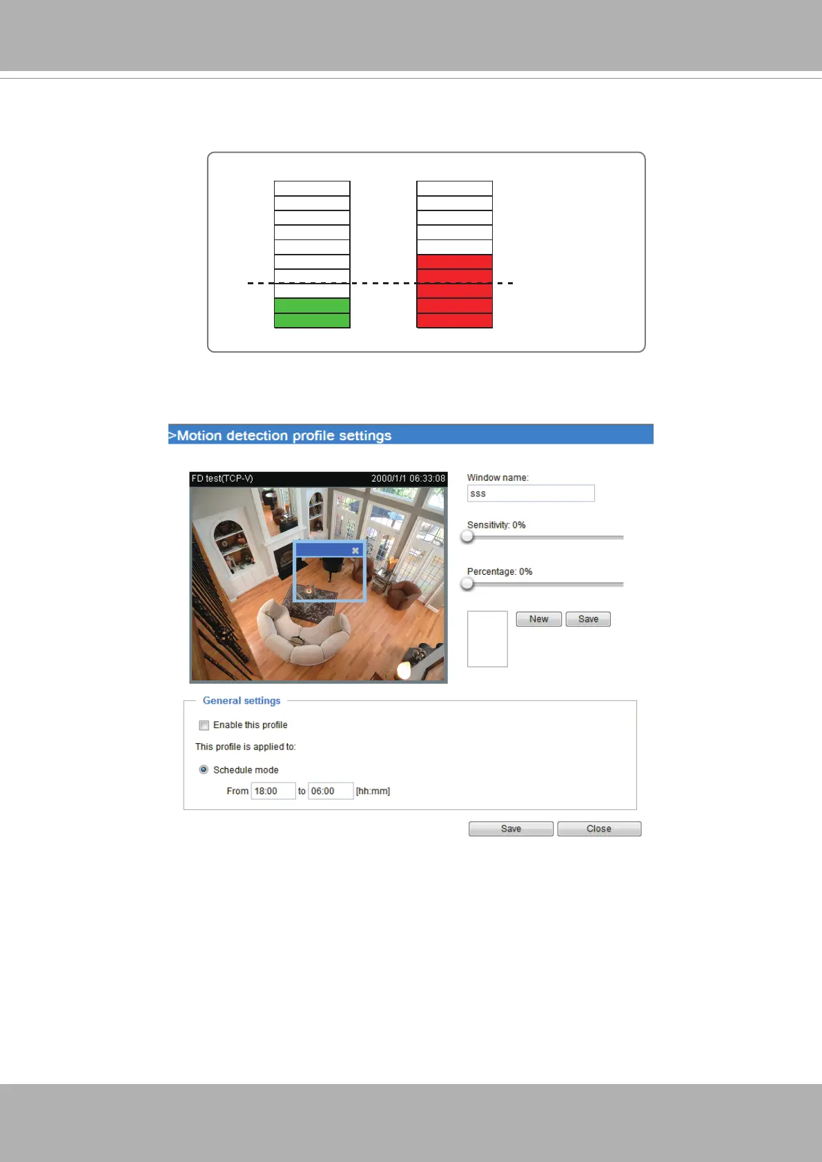 click Prole to open the Motion Detection Prole Settings page as shown below. A total of three motion