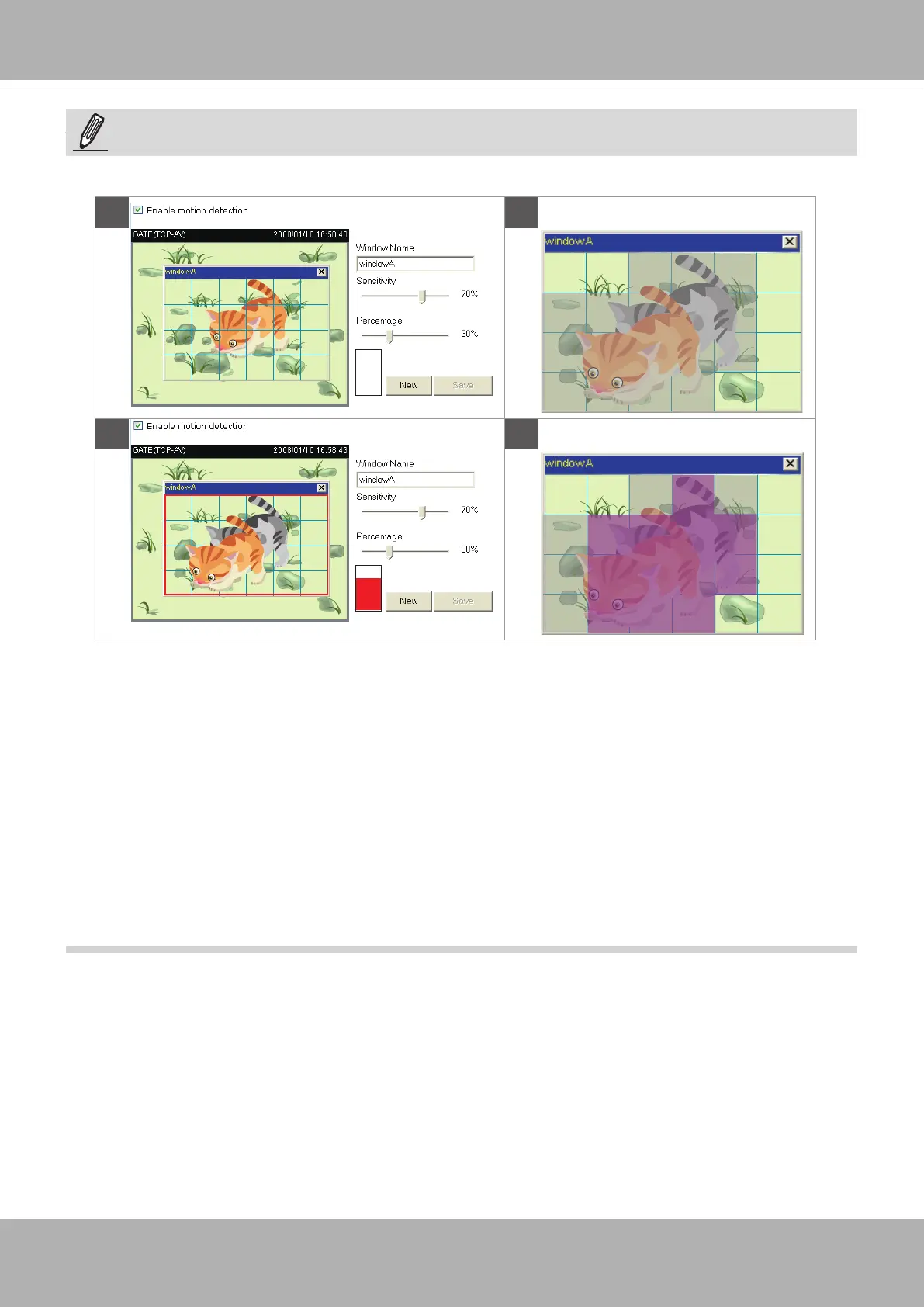 There are two motion detection parameters: Sensitivity and Percentage. In the illustration above,