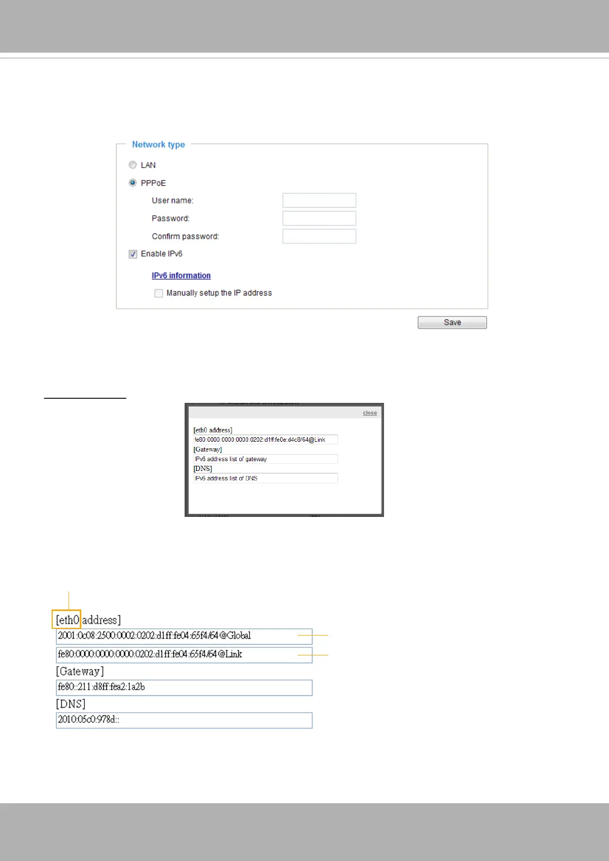 Select this option and click Save to enable IPv6 settings�