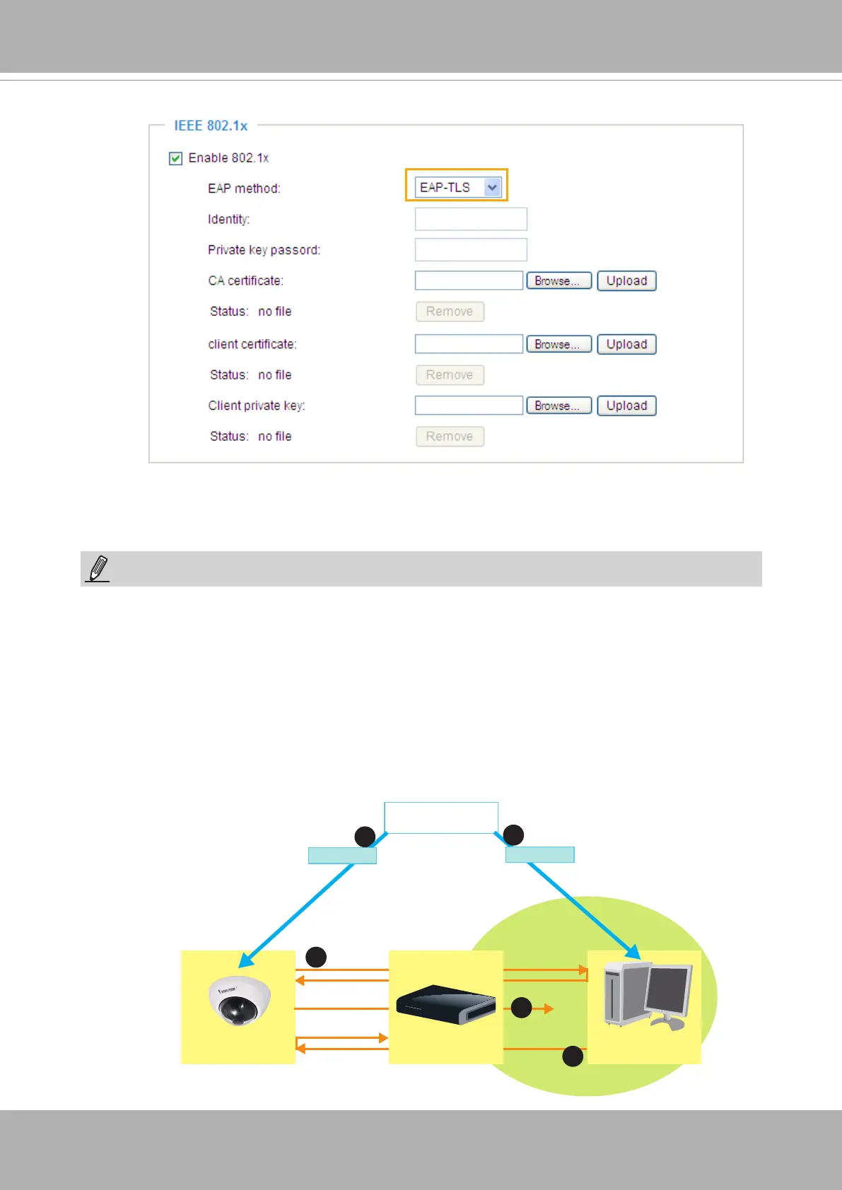 3. The switch also forwards the RADIUS Server’s certicate to the Network Camera�