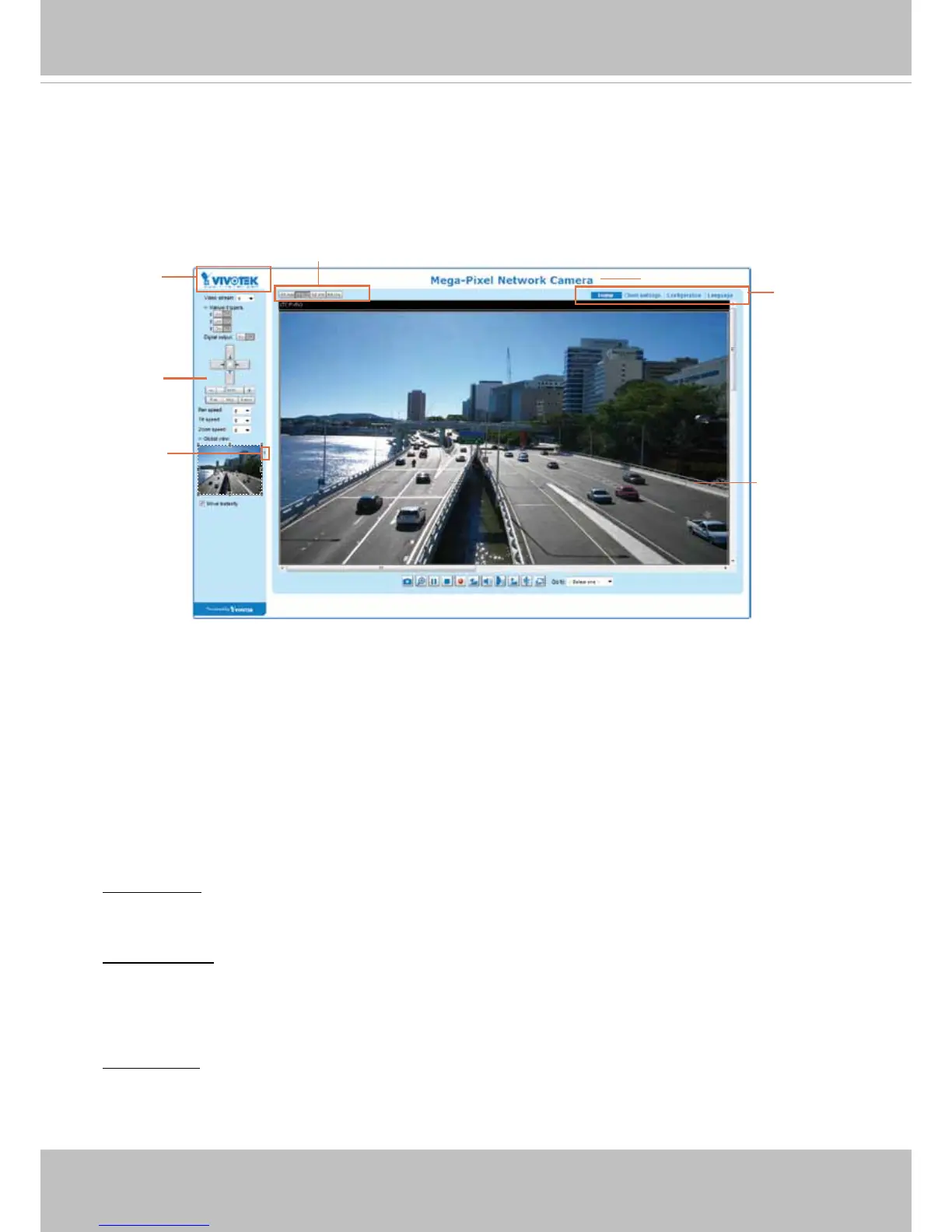 VIVOTEK INC. Logo, Host Name, Camera Control Area, Configuration Area, Menu, and Live