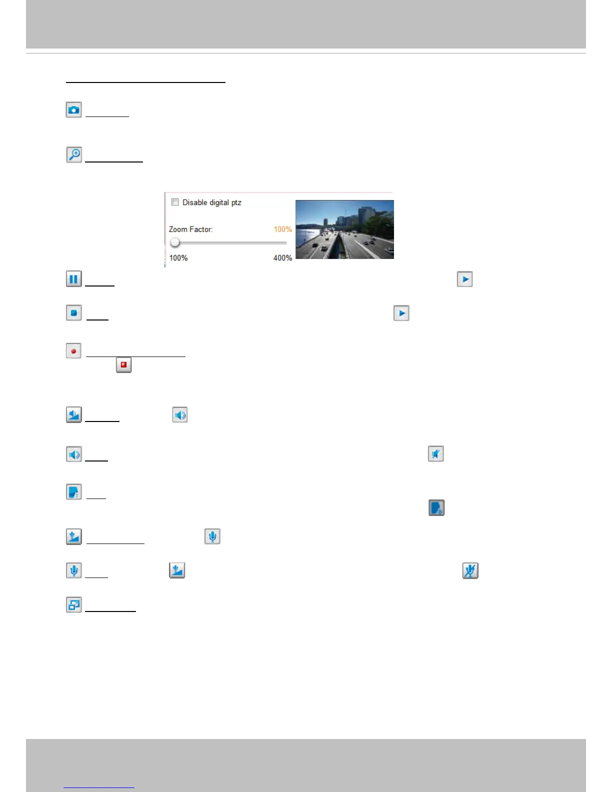 Video and Audio Control Buttons: Depending on the Network Camera model and Network Camera