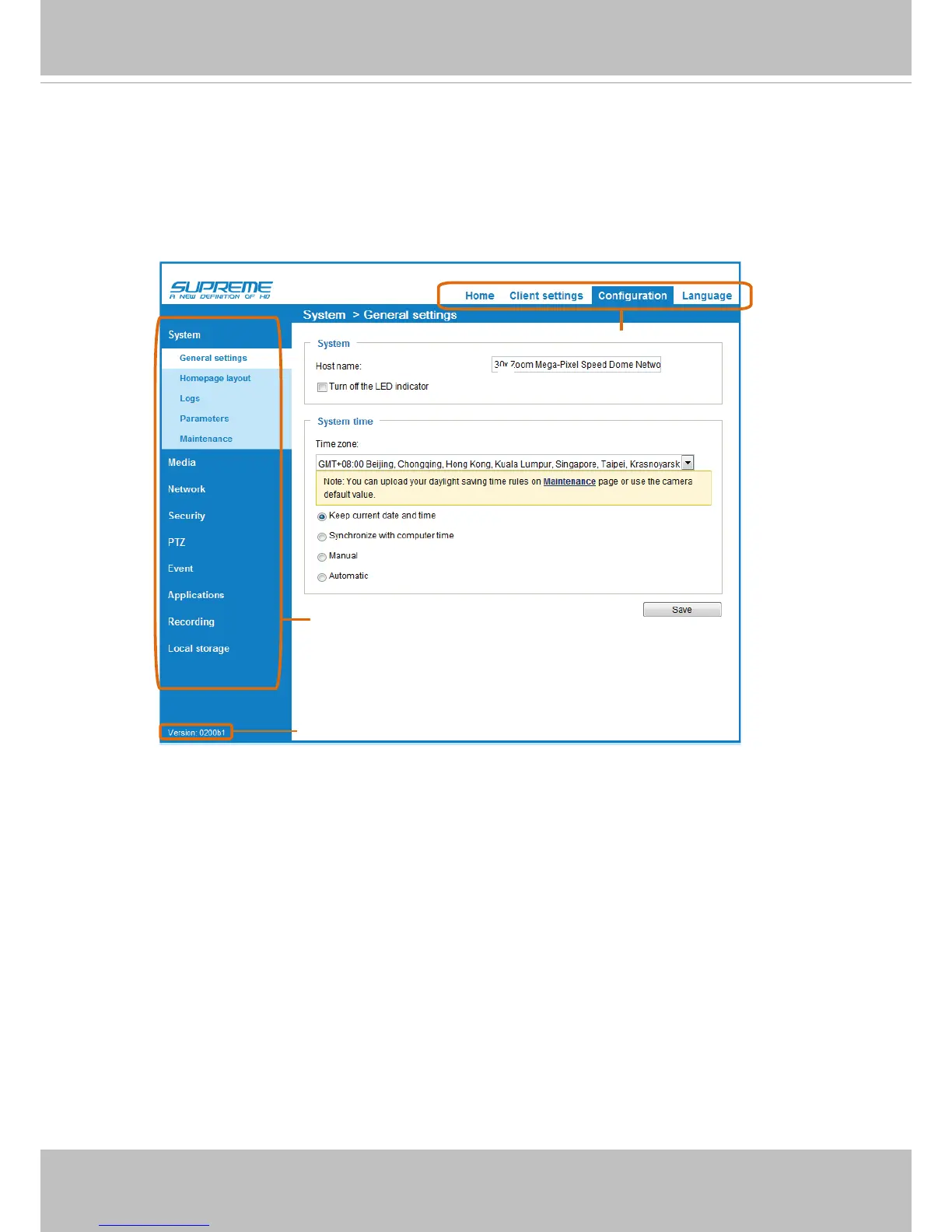 Click Configuration on the main page to enter the camera setting pages. Note that only