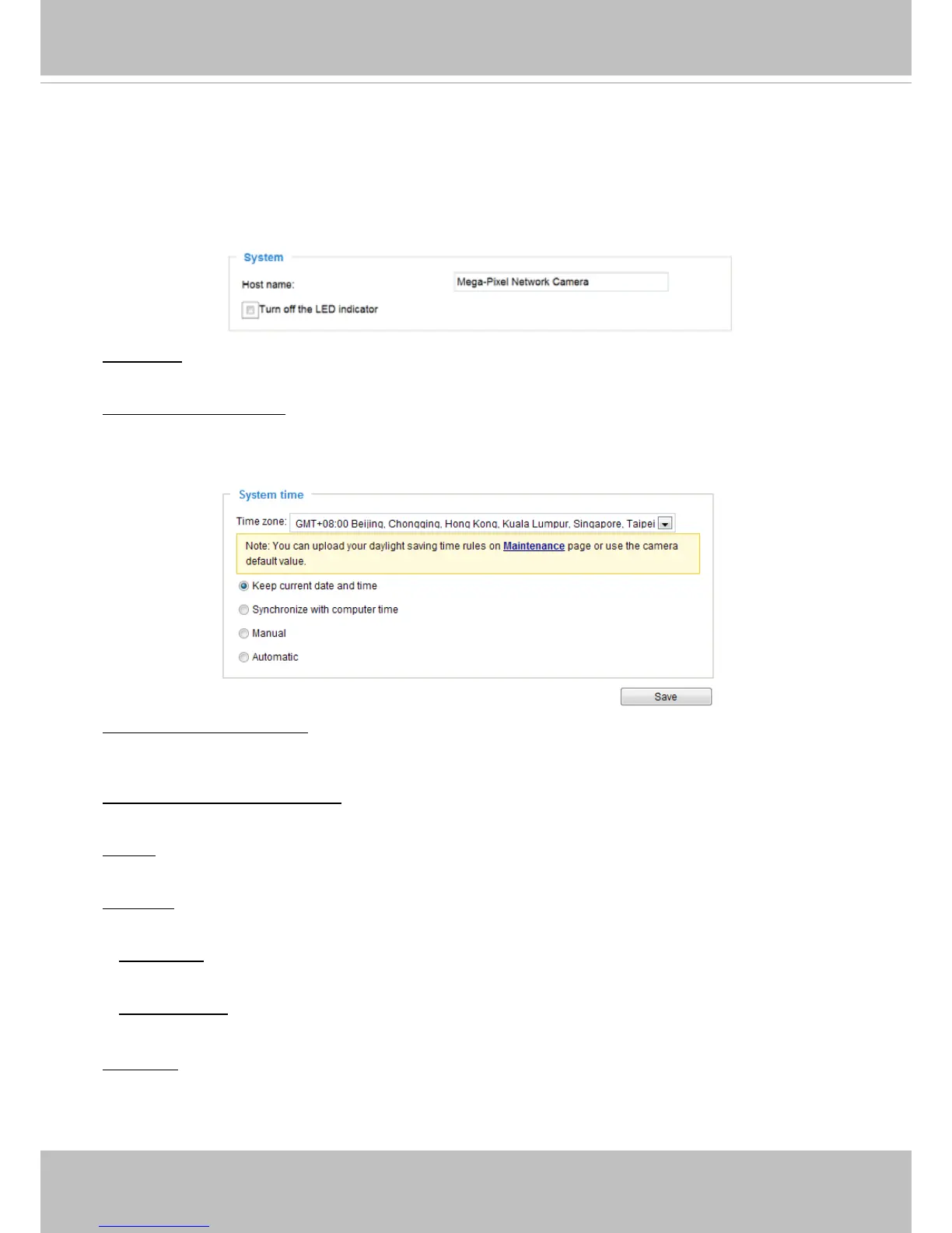 Host name: Enter a desired name for the Network Camera. The text will be displayed at the top of the