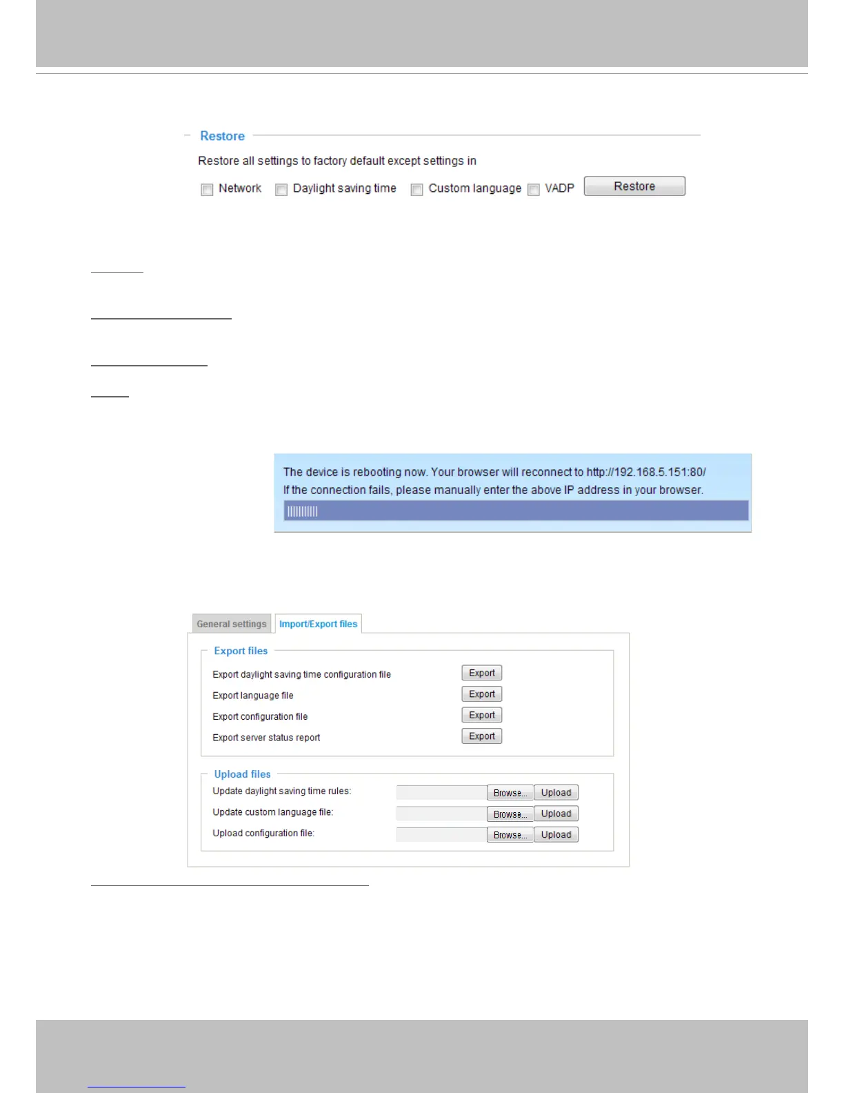 This feature allows you to Export / Update daylight saving time rules, custom language le, conguration