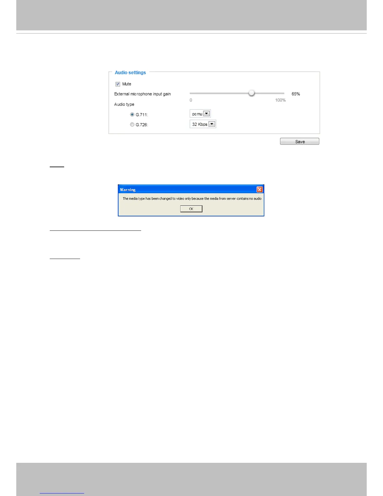 Mute: Select this option to disable audio transmission from the Network Camera to all clients. Note
