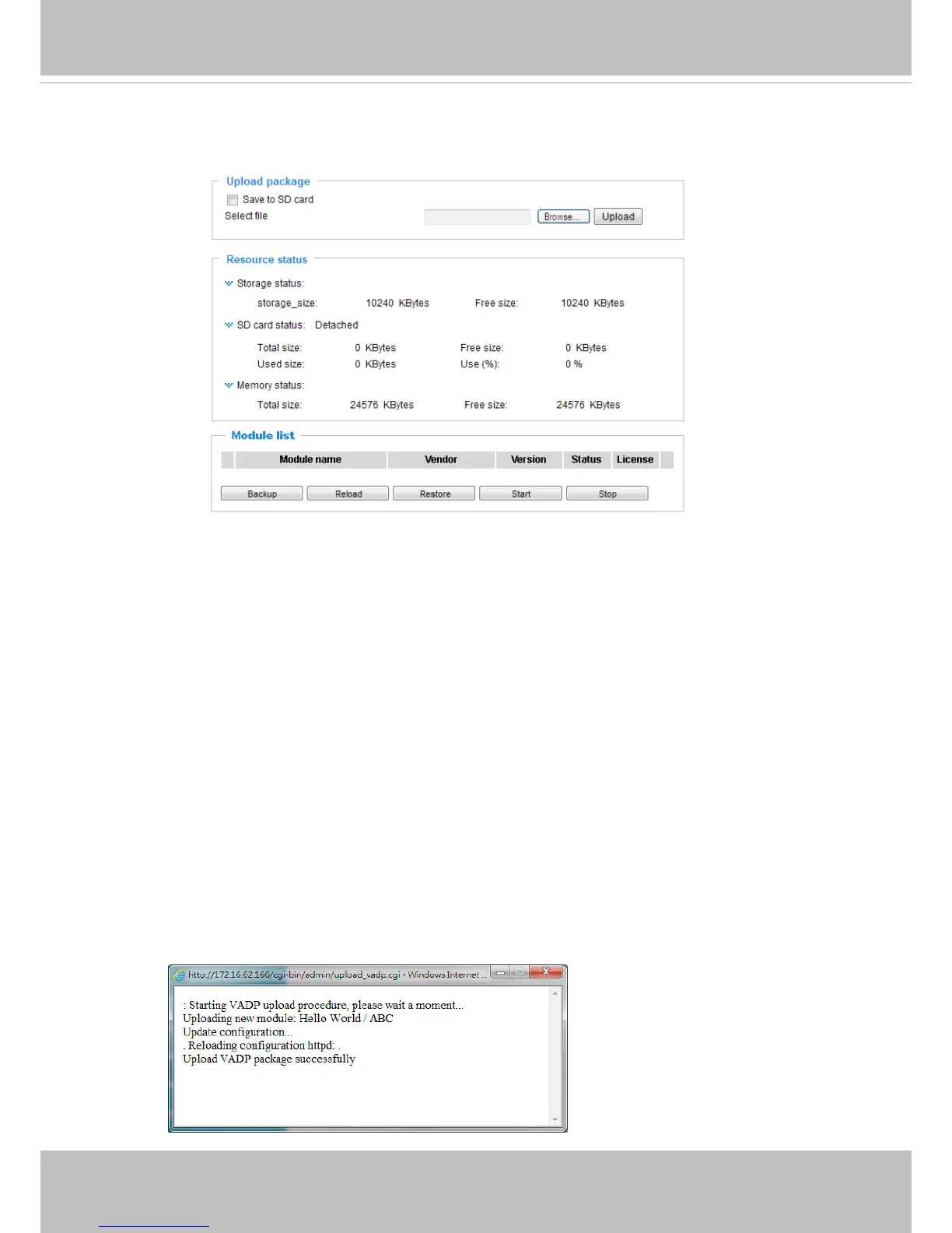 • Once the software package is successfully uploaded, the module conguration (vadp.