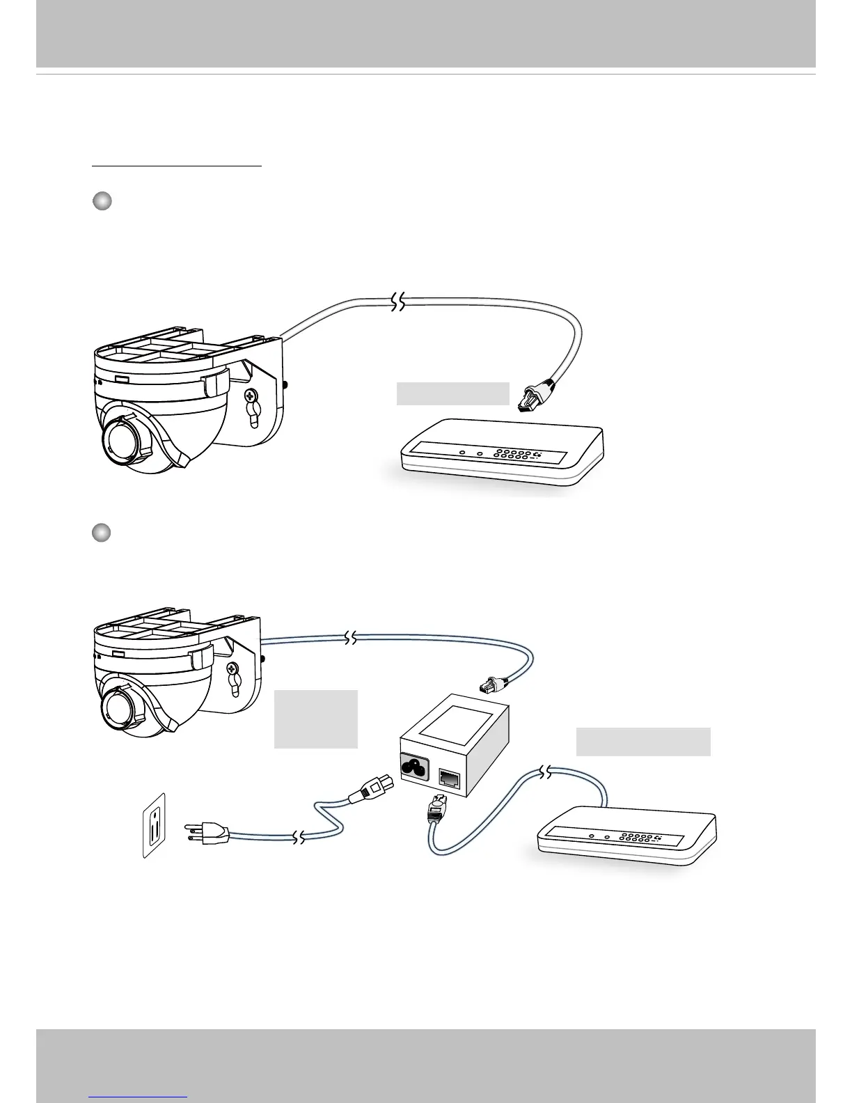 Use a PoE power injector (optional) to connect between the Network Camera and a