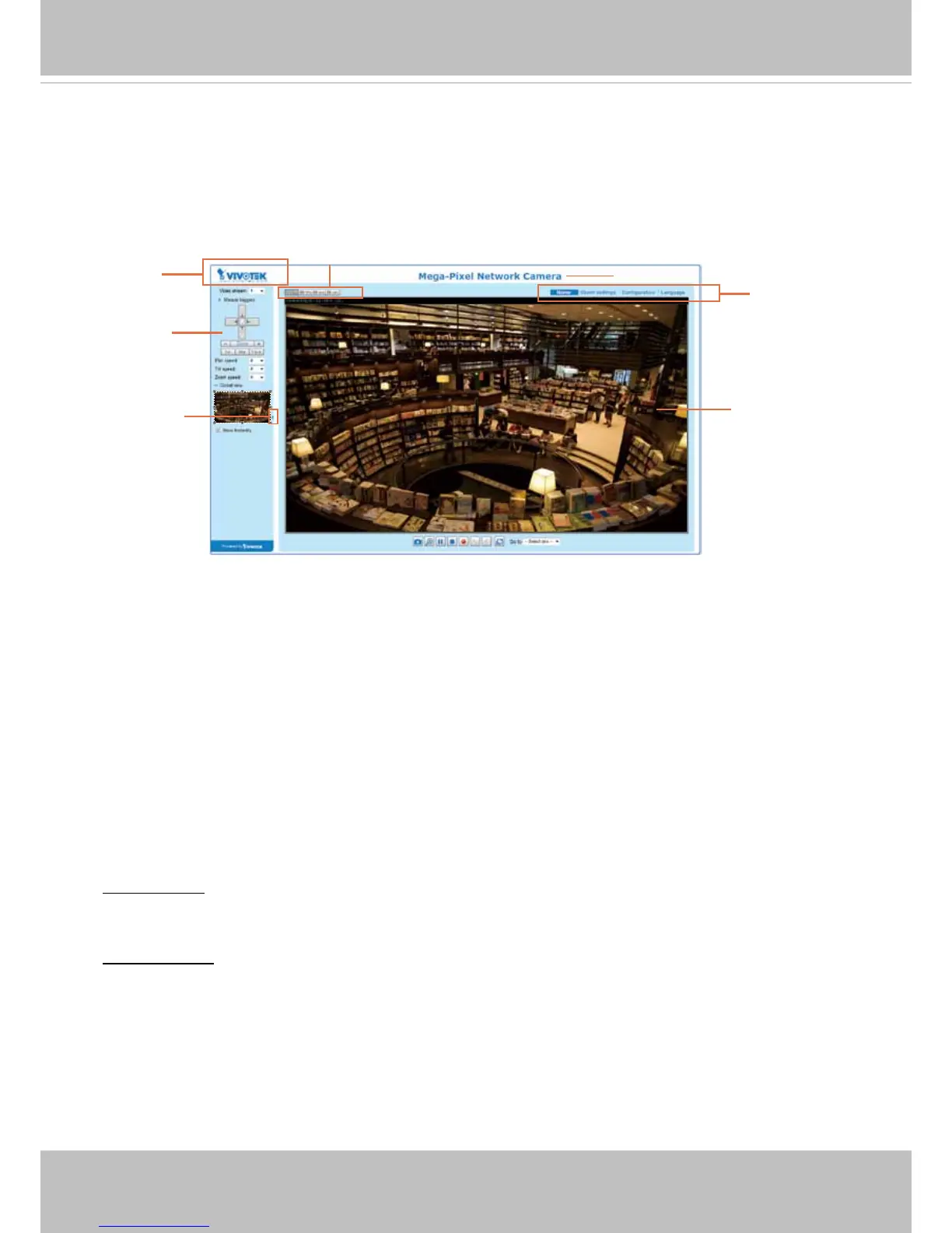 VIVOTEK INC. Logo, Host Name, Camera Control Area, Configuration Area, Menu, and Live