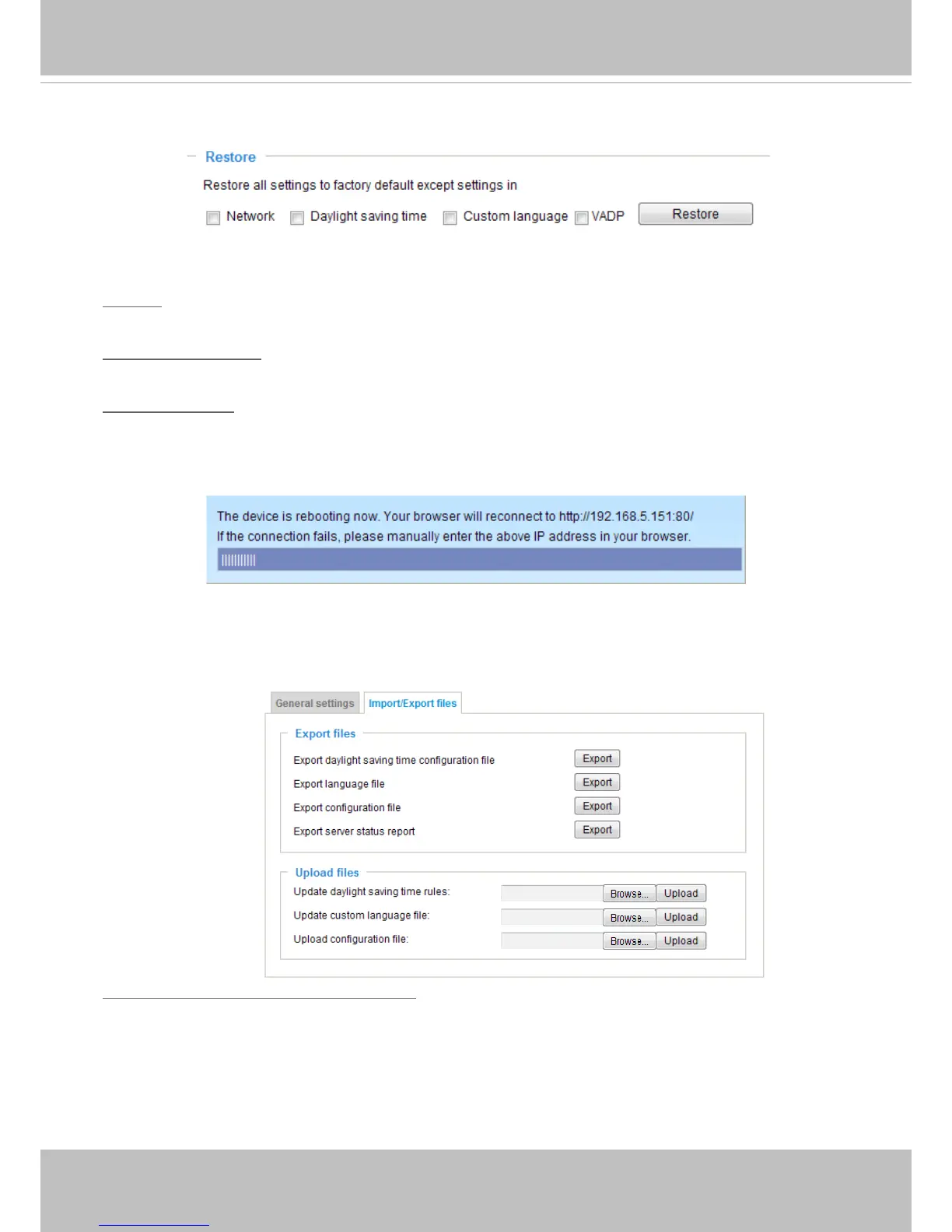 This feature allows you to Export / Update daylight saving time rules, custom language le, conguration