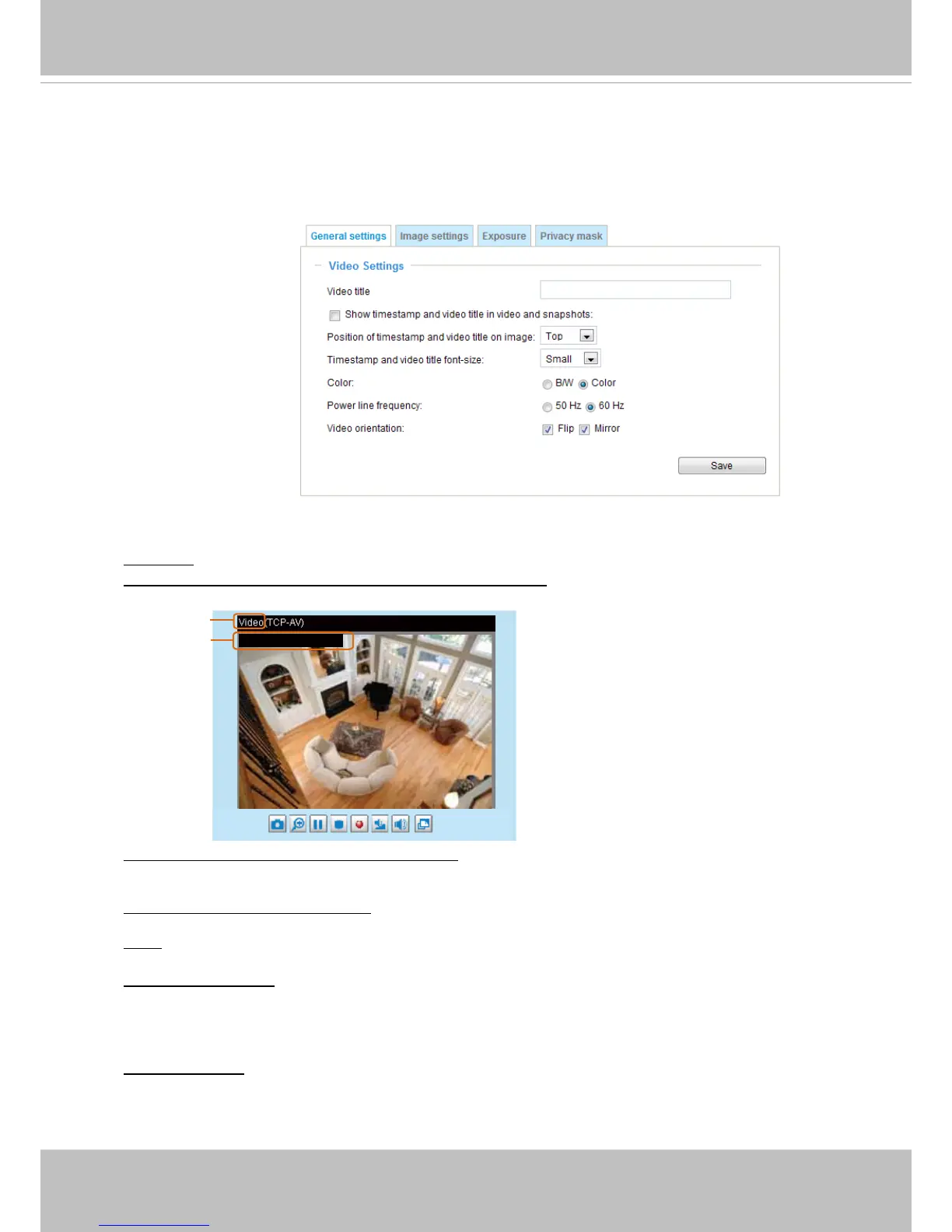 Video orientation: Flip - vertically reect the display of the live video; Mirror - horizontally reect the