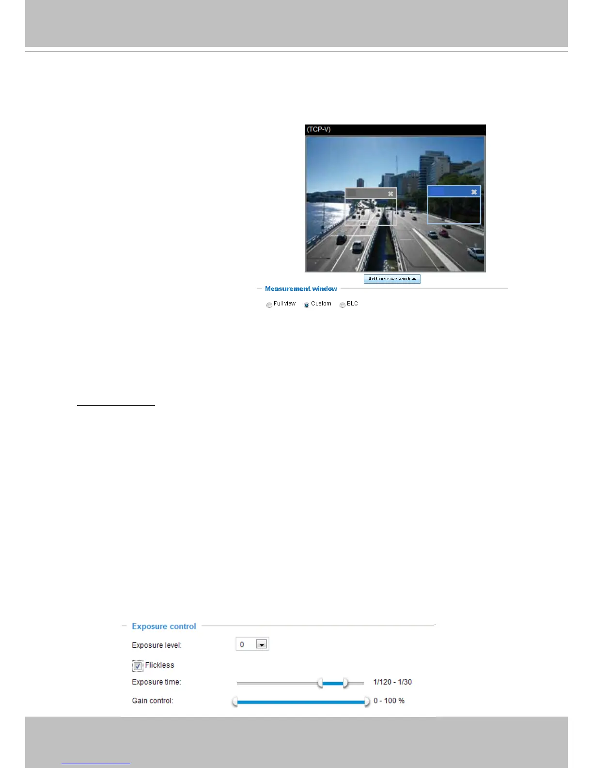 bars to specify a range of shutter time and Gain control values within which the camera can