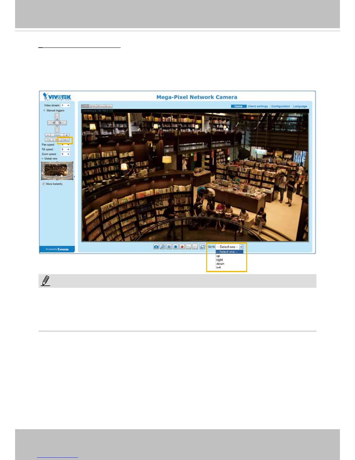The Preset positions will also be displayed on the home page. Select one from the Go to drop-down