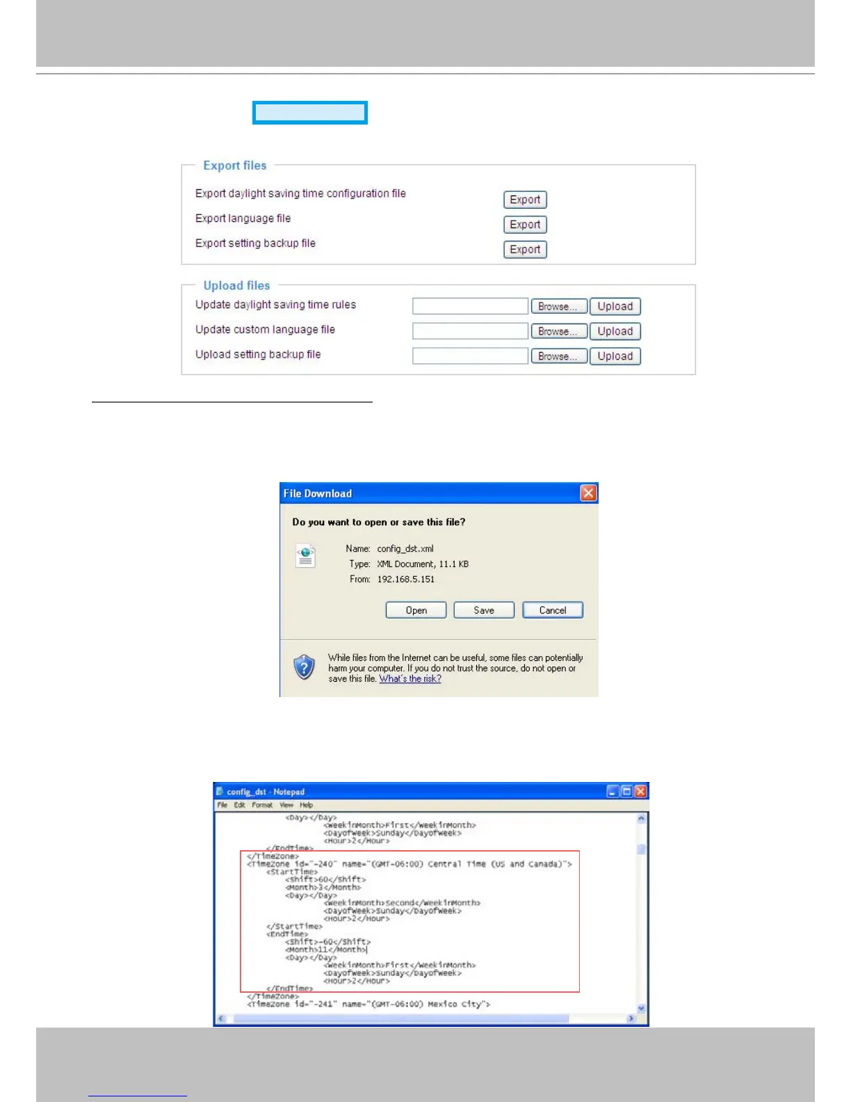 Export daylight saving time conguration le: Click to set the start and end time of DST�