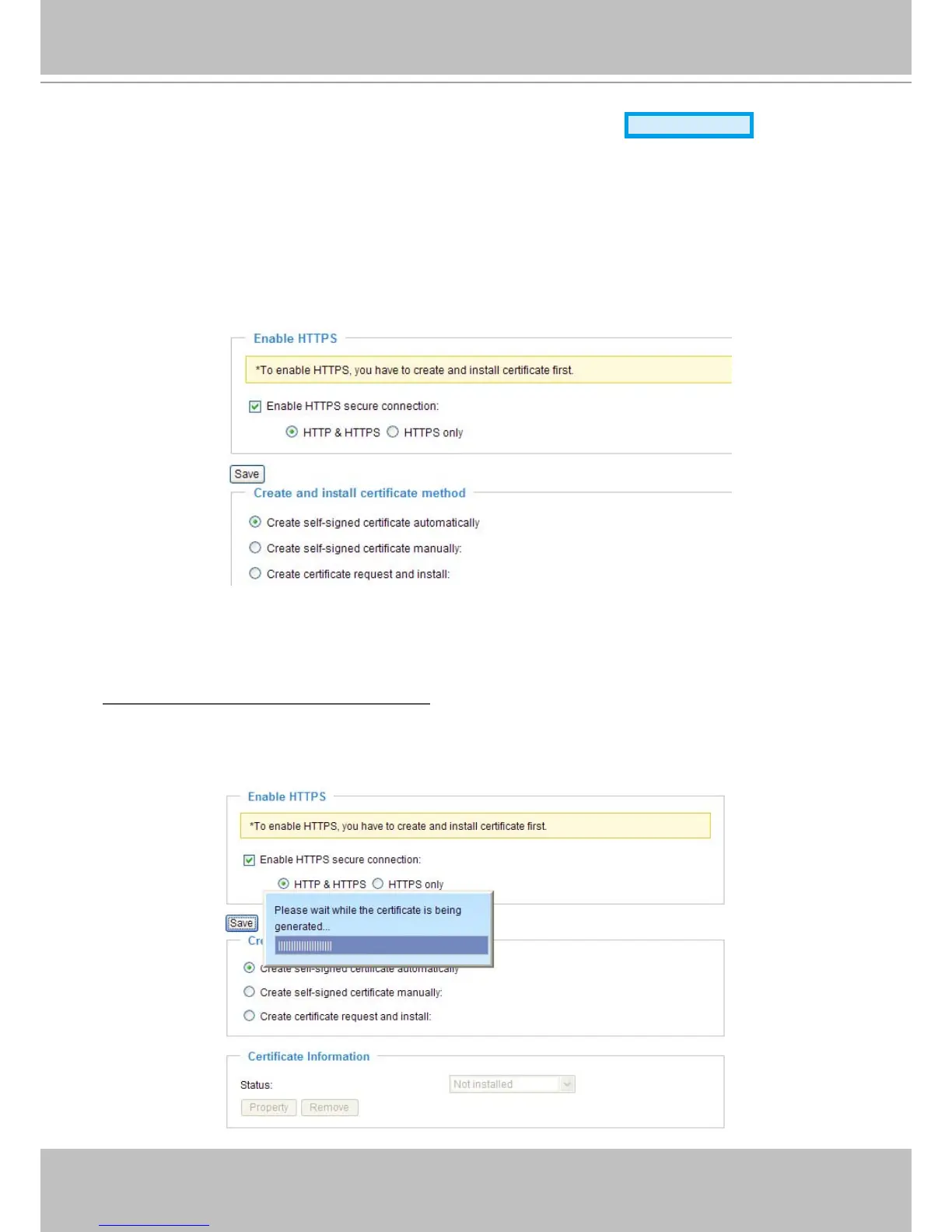 Before using HTTPS for communication with the Network Camera, a Certicate must be created rst.