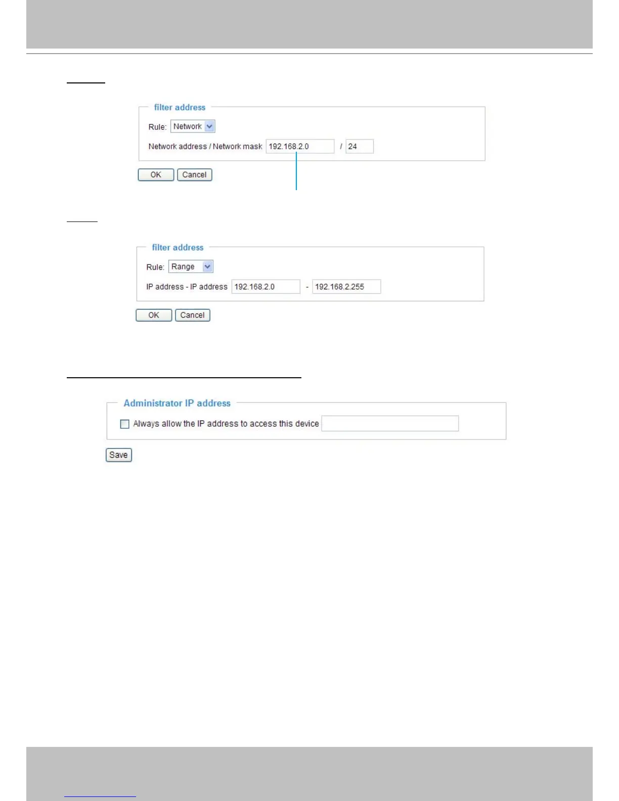 IP address in this eld to make sure the Administrator can always connect to the device.