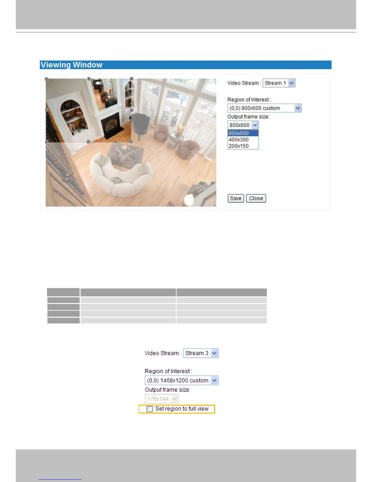 of Interest and the Output Frame Size for stream 1 ~ 3�