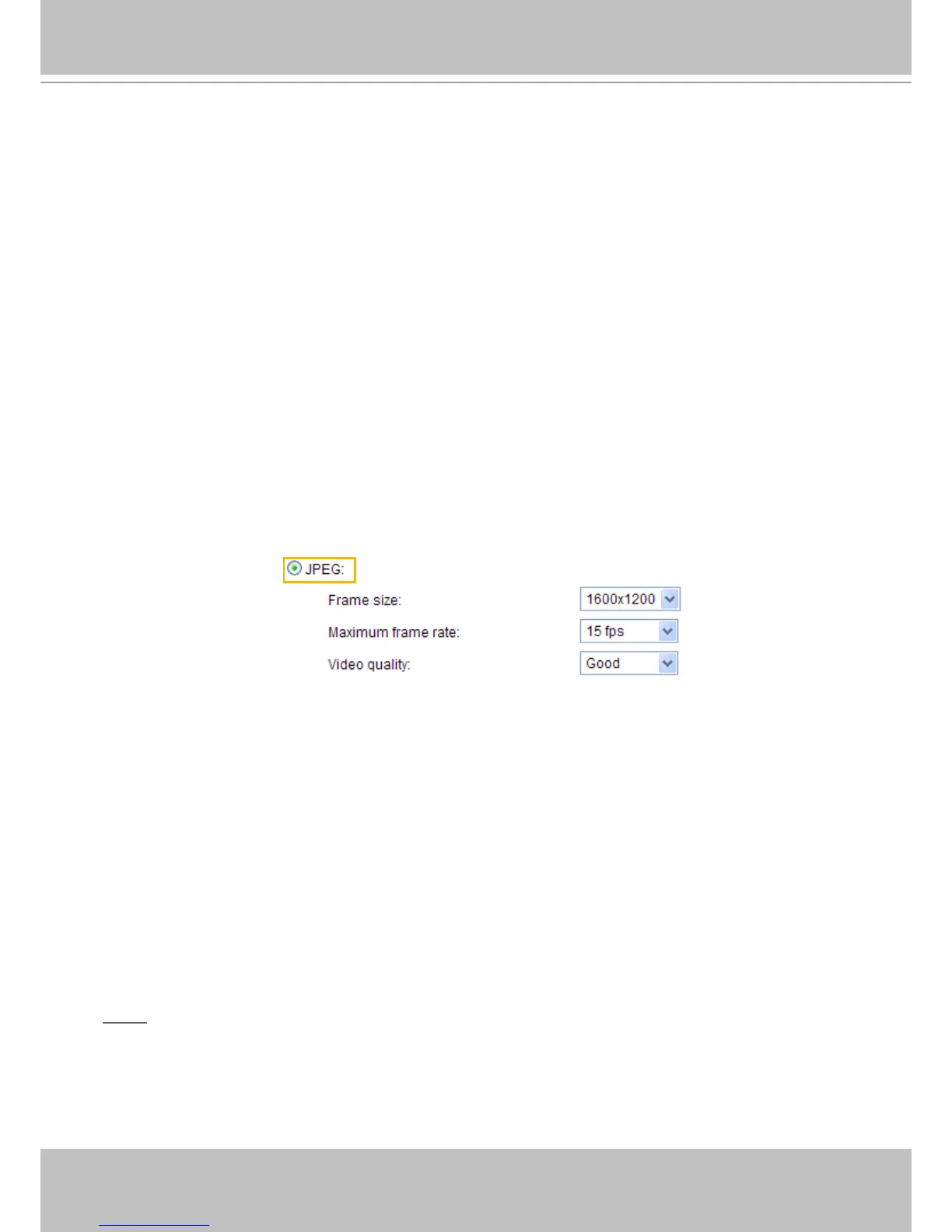 If JPEG mode is selected, the Network Camera continuously sends JPEG images to the client, producing