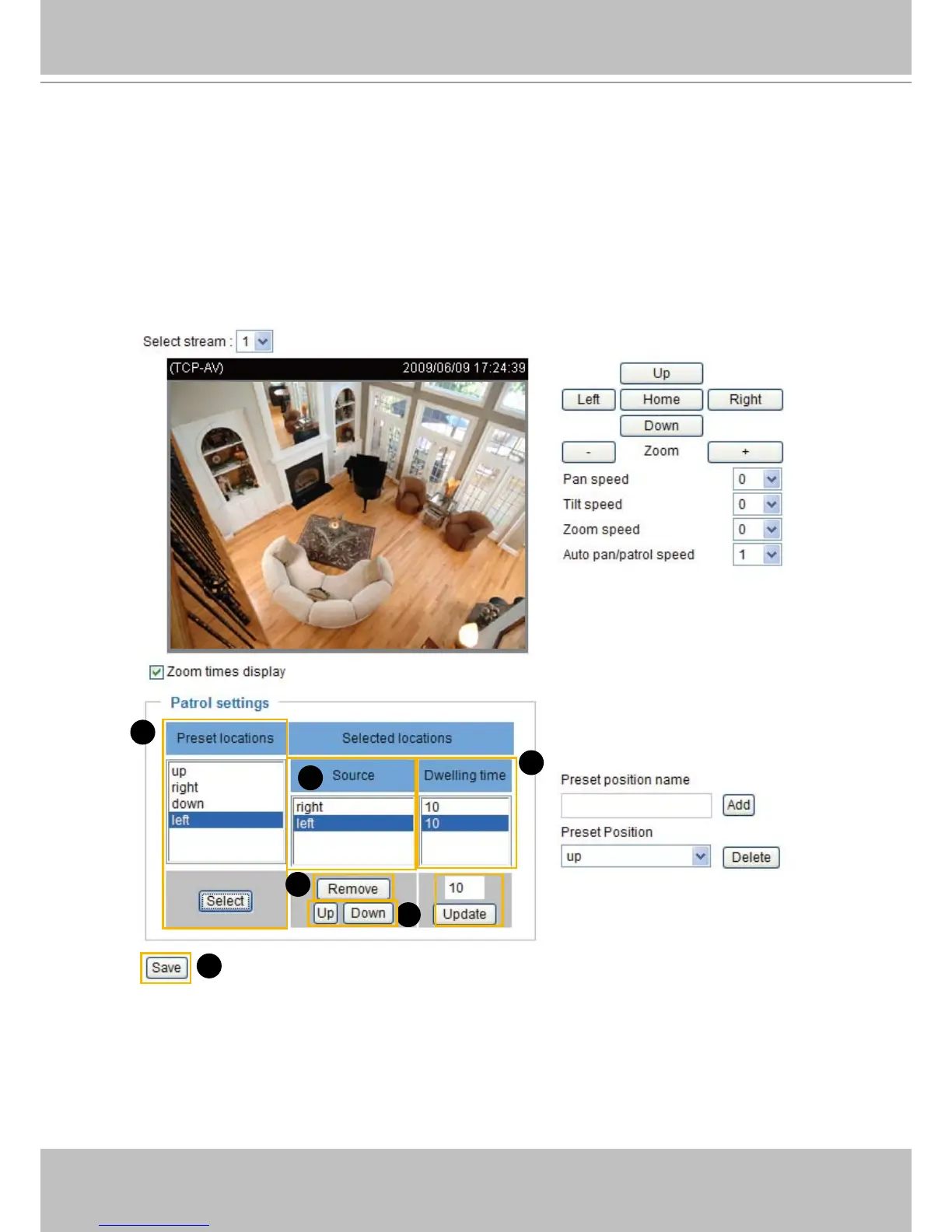 3� Set the Dwelling time for the preset location during auto patrol. You can also manually enter a value