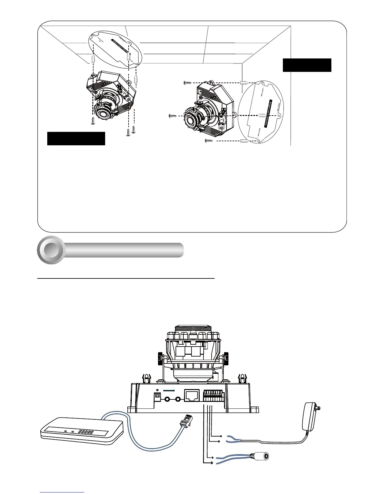 3. The Network Camera can be mounted with the cable routed through the ceiling/wall or