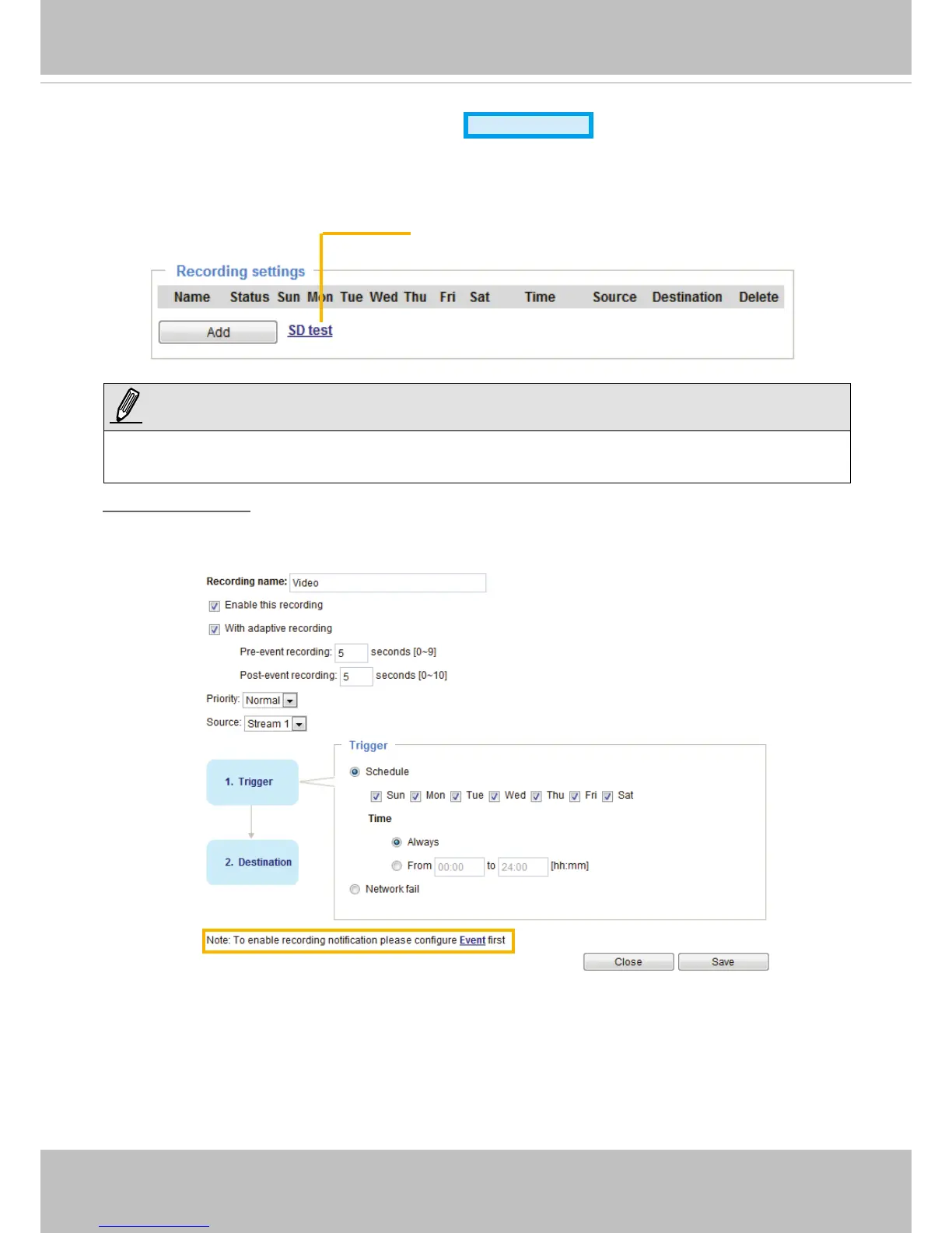 Click Add to open the recording setting window. On this page, you can dene the adaptive recording,