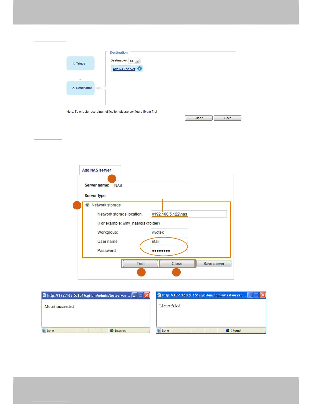 Click Add NAS server to open the server setting window and follow the steps below to set up: