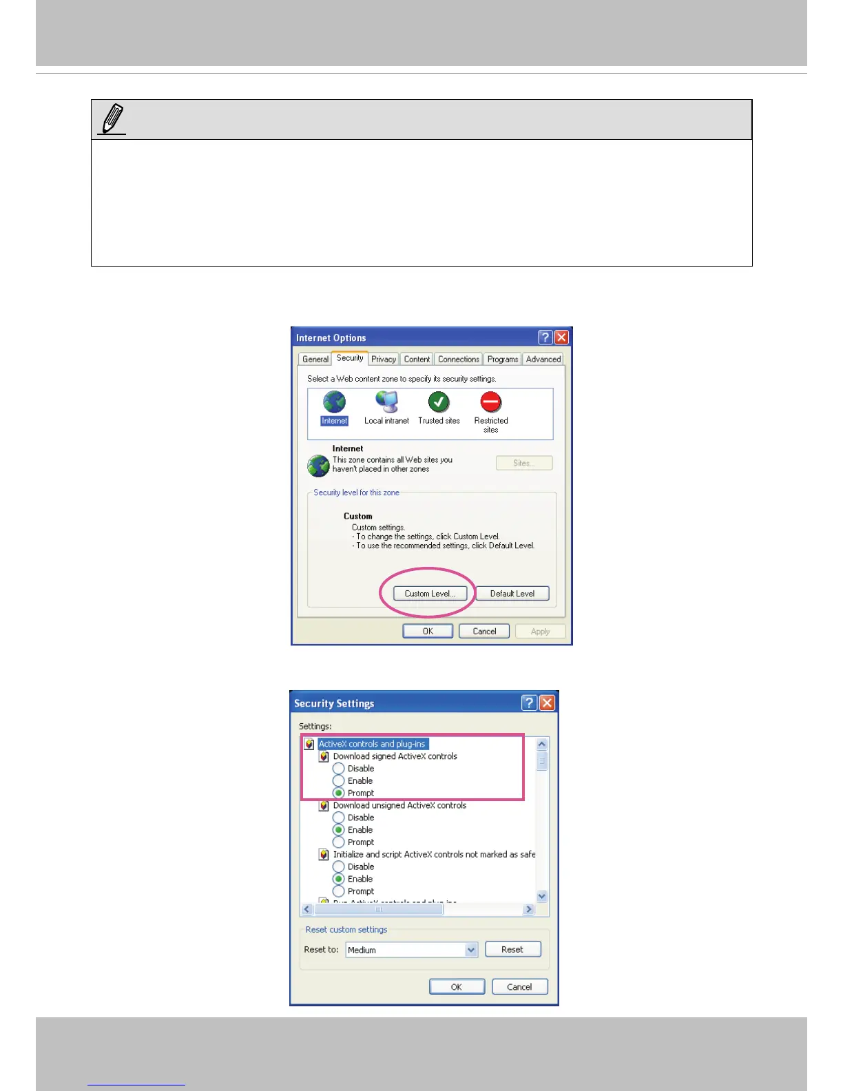 1� Choose Tools > Internet Options > Security > Custom Level�