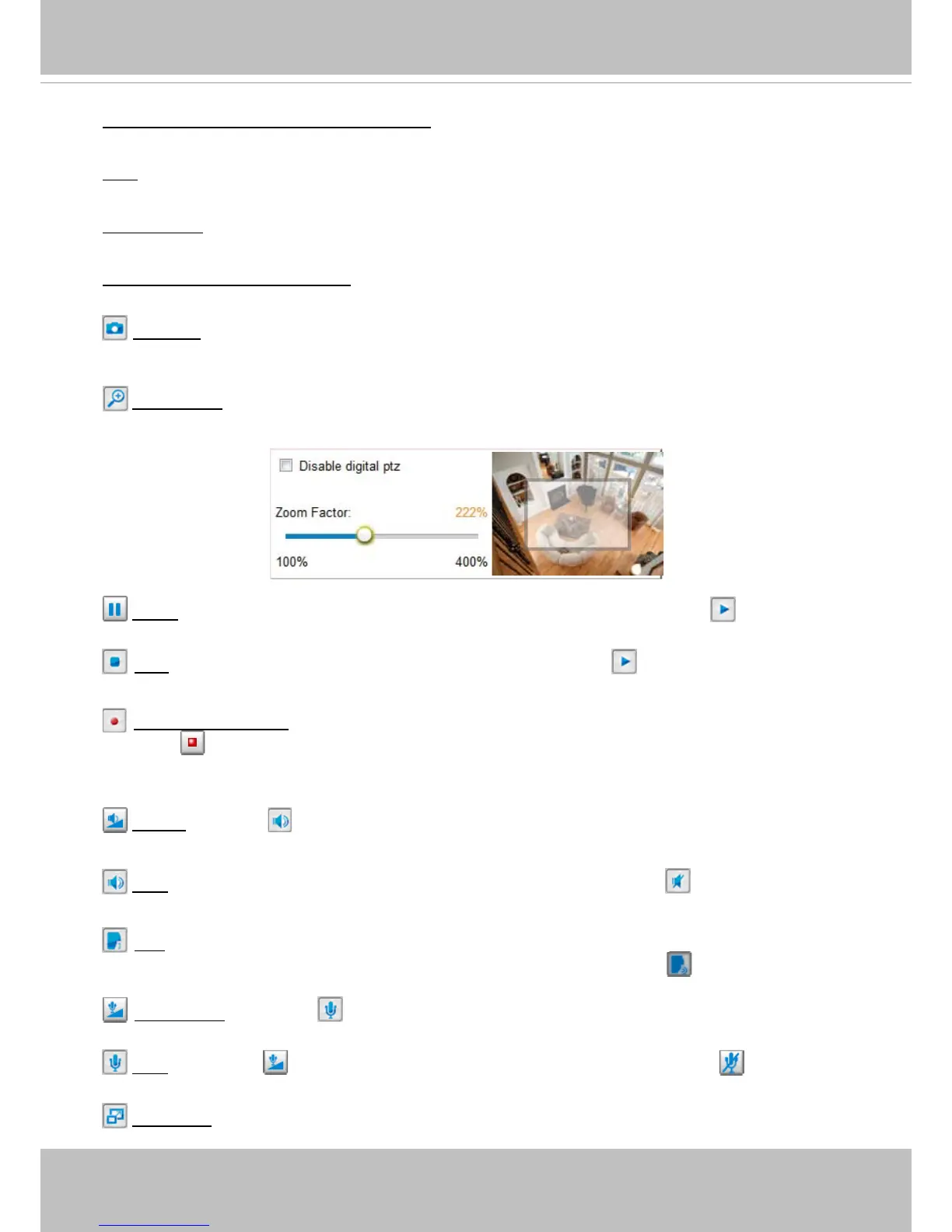 Stop: Stop the transmission of the streaming media� Click the Resume button to continue