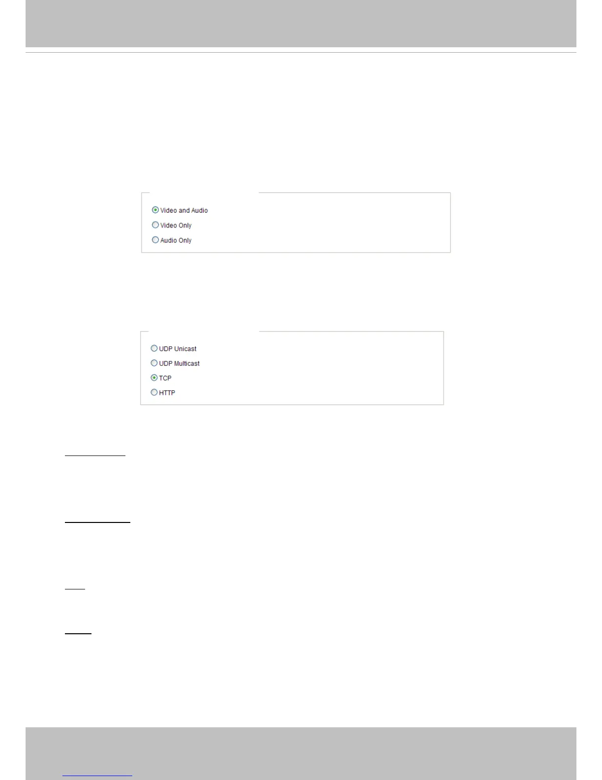Select to stream video or audio data or both� This is enabled only when the video mode is set to H�264 or