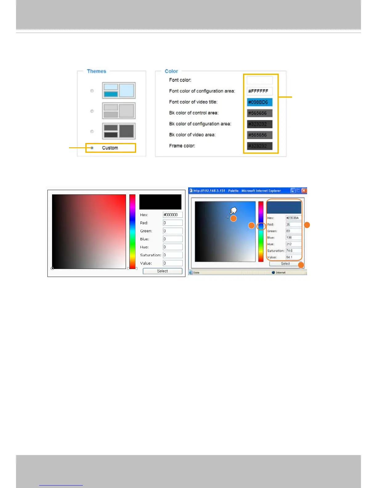 5. The selected color will be displayed in the corresponding elds and in the Preview column�