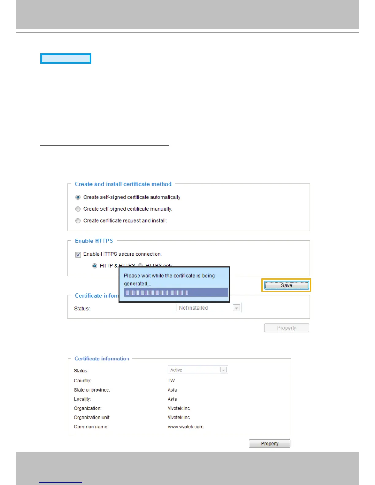 Before using HTTPS for communication with the Network Camera, a Certicate must be created rst.