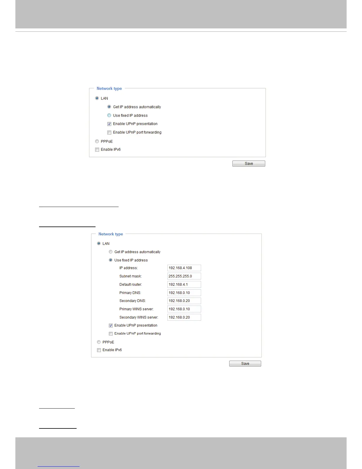 Use xed IP address: Select this option to manually assign a static IP address to the Network Camera�