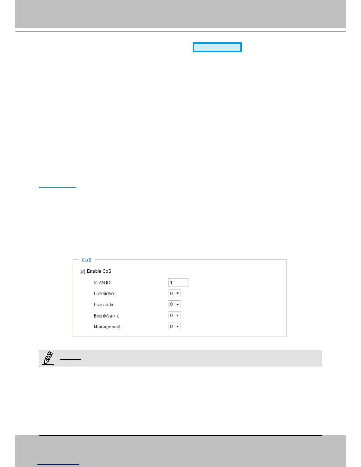 Below is the setting column for CoS� Enter the VLAN ID of your switch (0~4095) and choose the priority