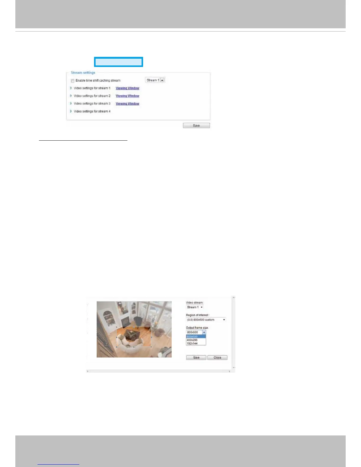 ■ Stream 2: Users can dene the "Region of Interest" (viewing region) and the "Output Frame Rate" (size