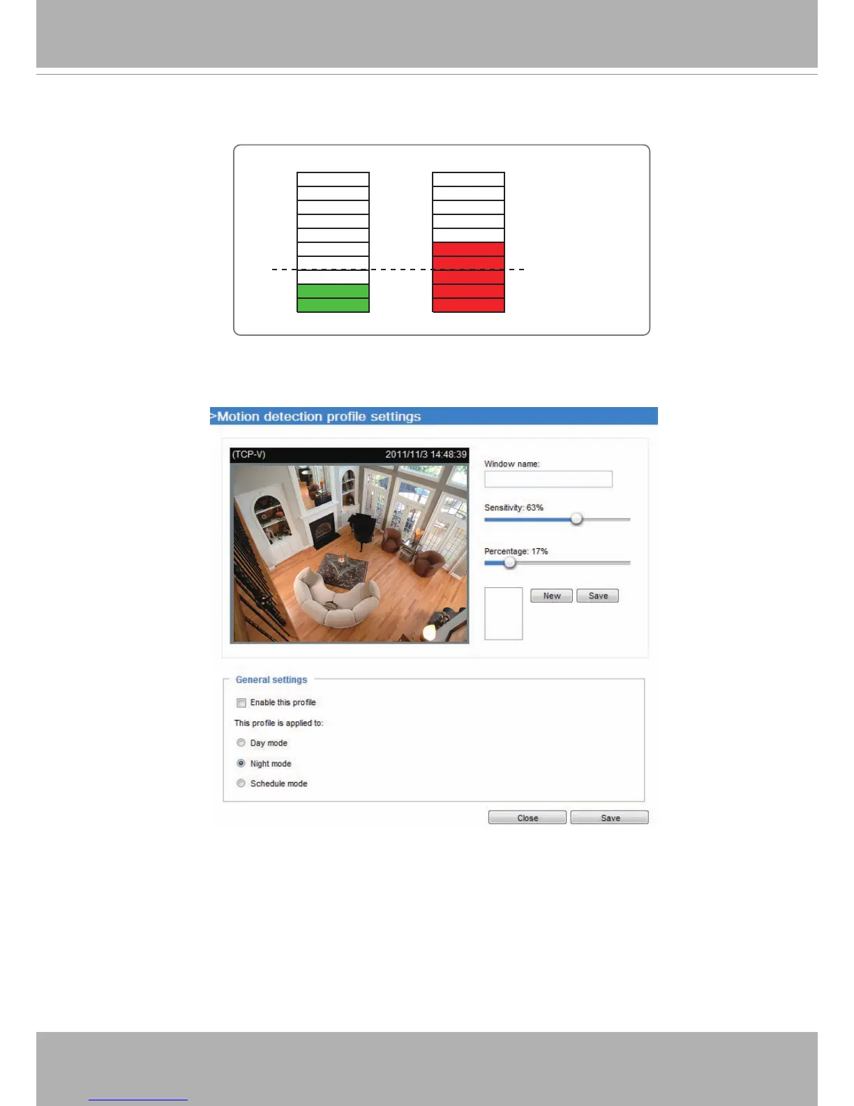 A green bar indicates that even though motions have been detected, the event has not been triggered