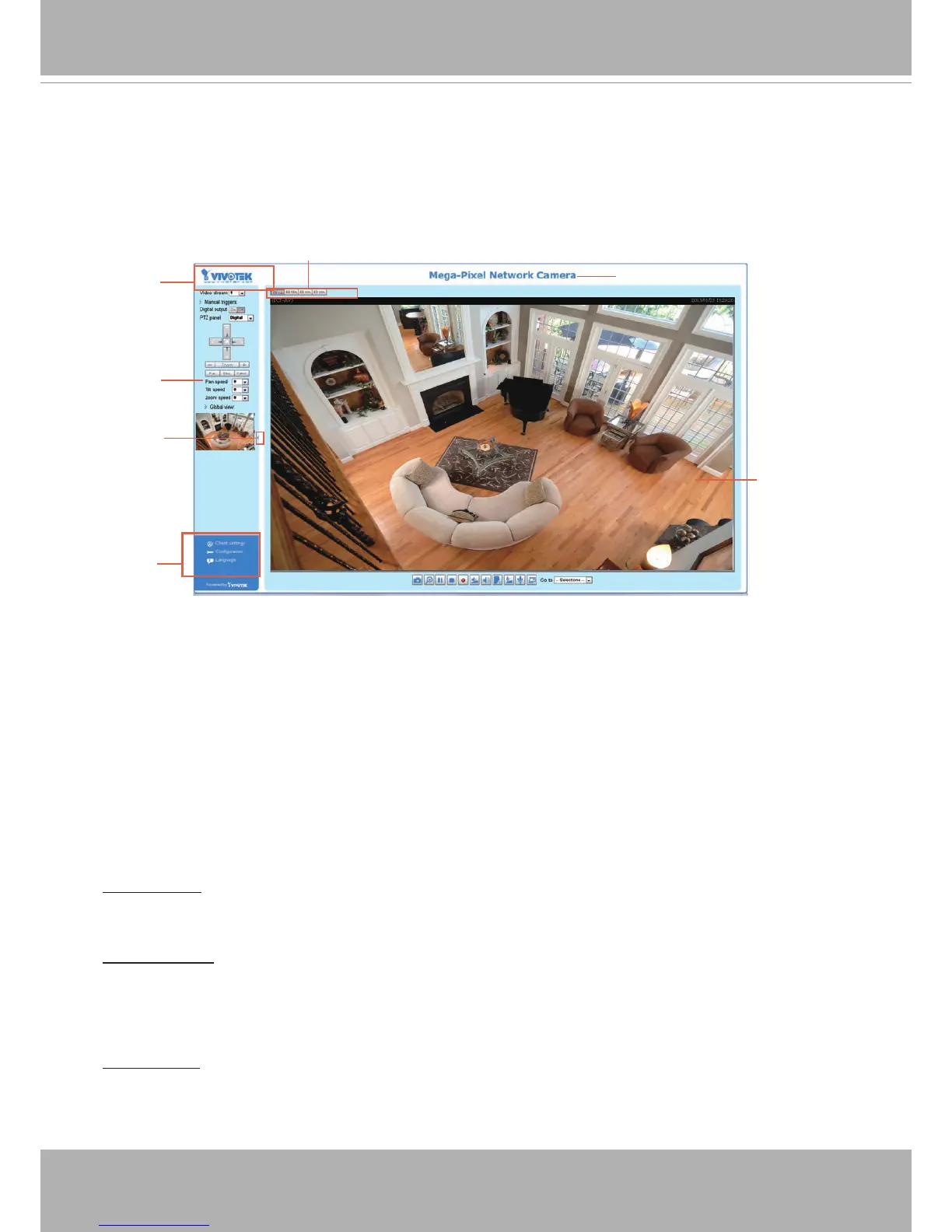 VIVOTEK INC. Logo, Host Name, Camera Control Area, Configuration Area, Menu, and Live