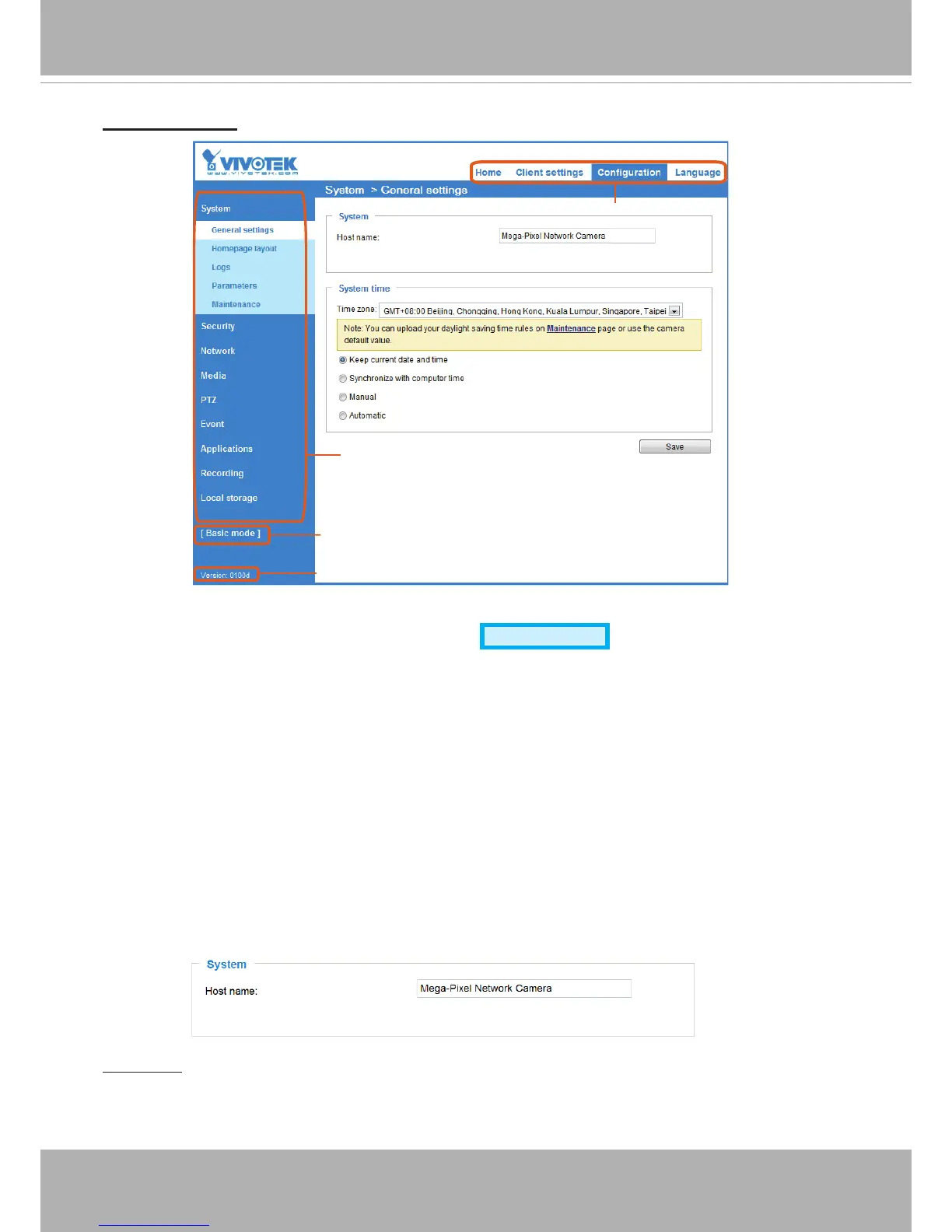 This section explains how to congure the basic settings for the Network Camera, such as the