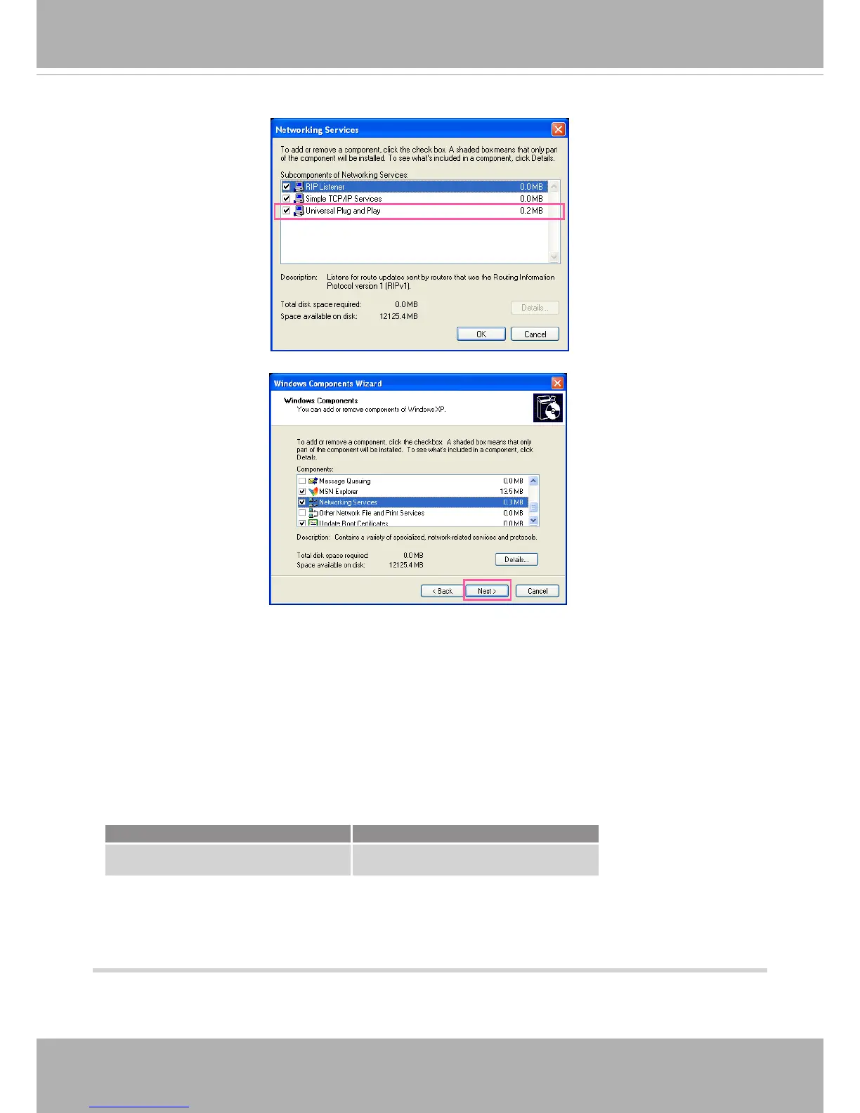 4. In the Networking Services dialog box, select Universal Plug and Play and click OK.