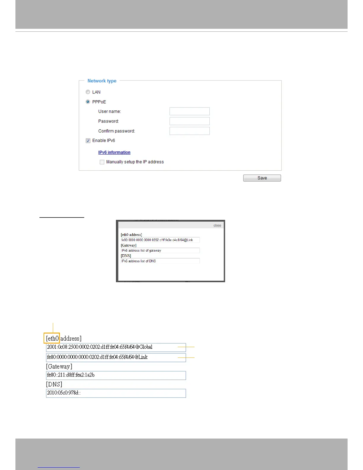 IPv6 Information: Click this button to obtain the IPv6 information as shown below.
