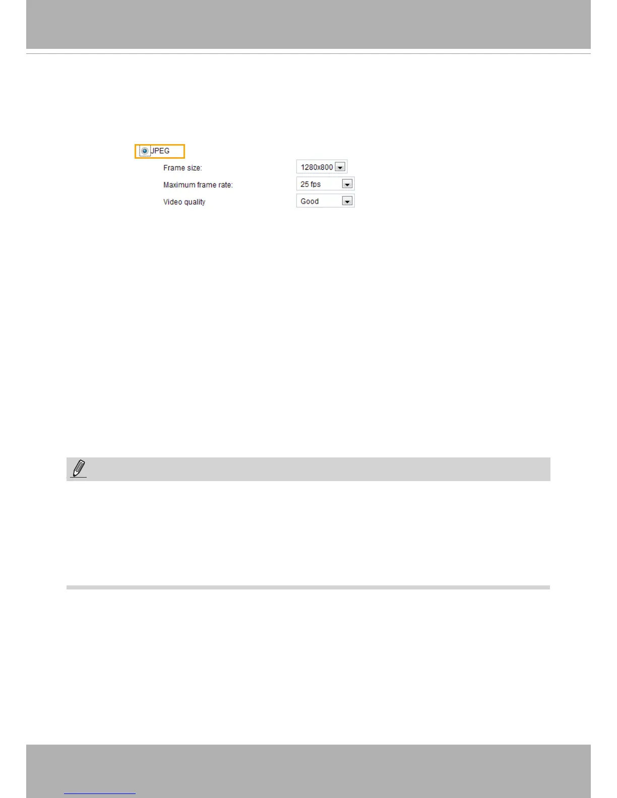 If JPEG mode is selected, the Network Camera sends consecutive JPEG images to the client, producing