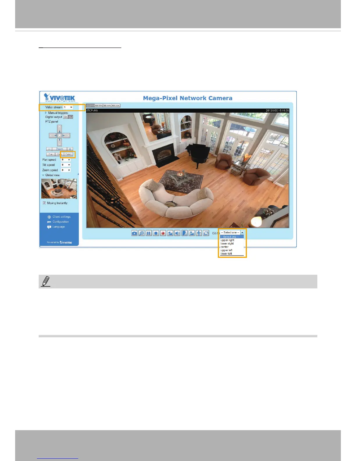 The Preset positions will also be displayed on the home page. Select one from the Go to drop-down