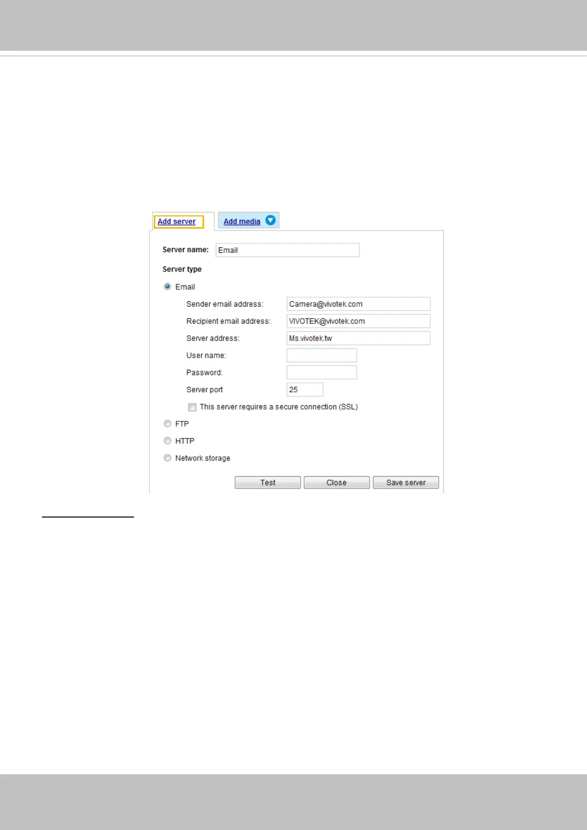 To set an event with recorded video or snapshots, it is necessary to configure the server and media